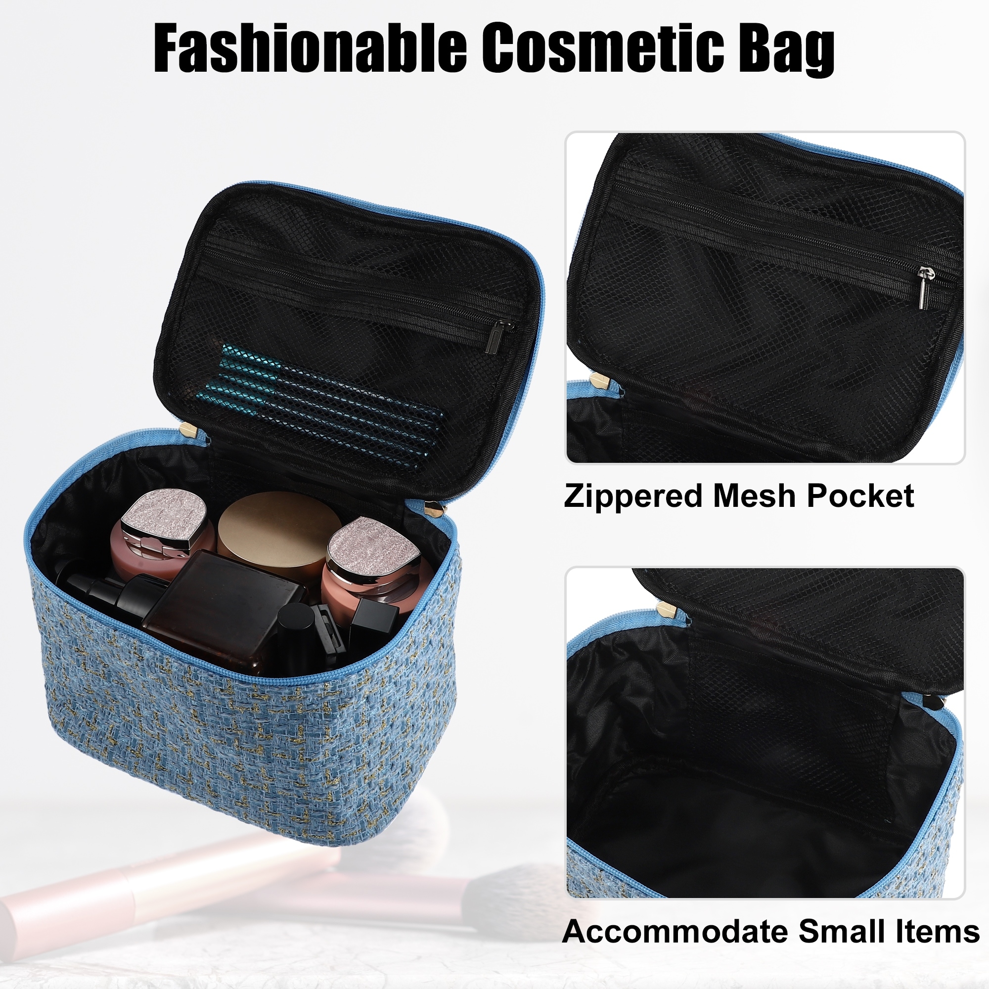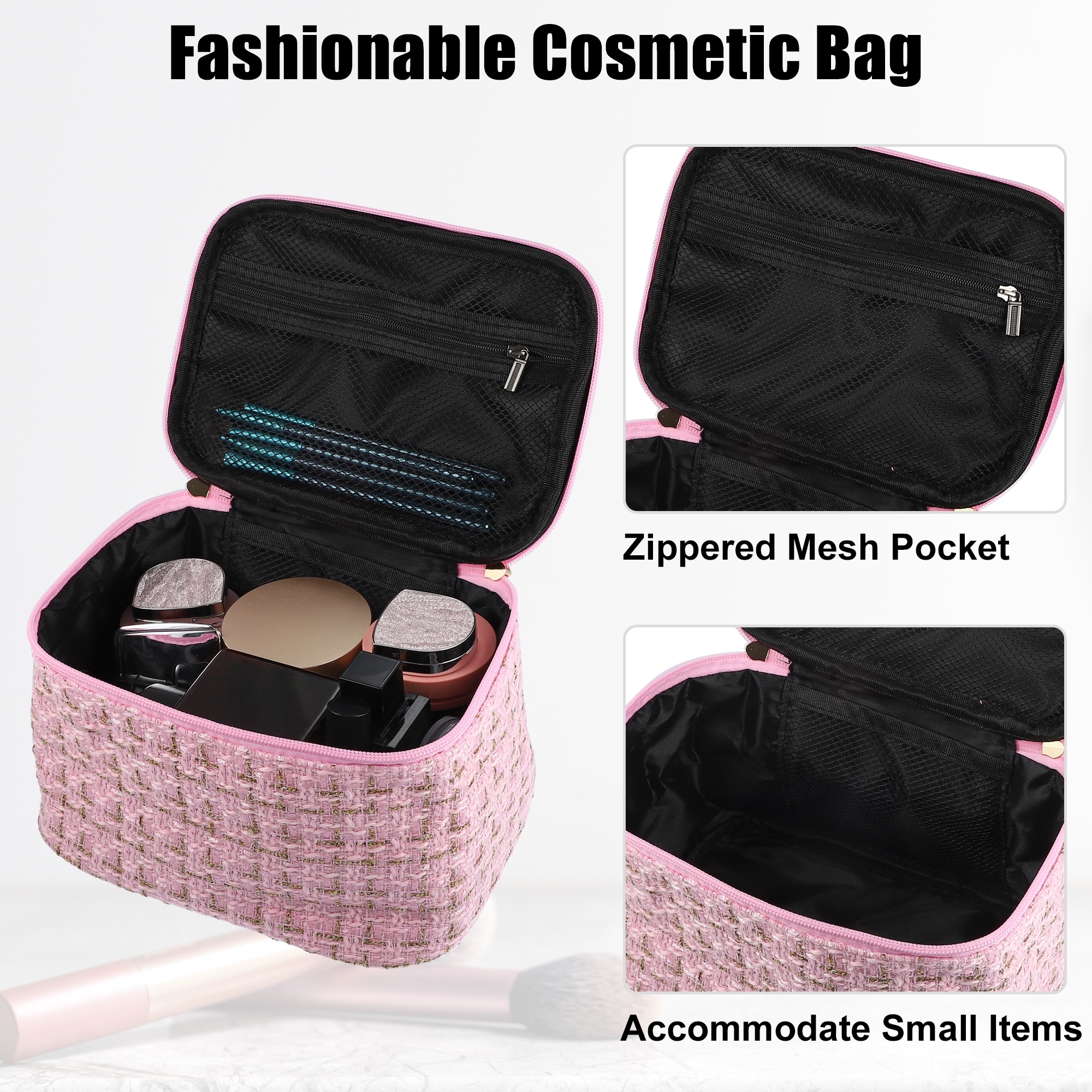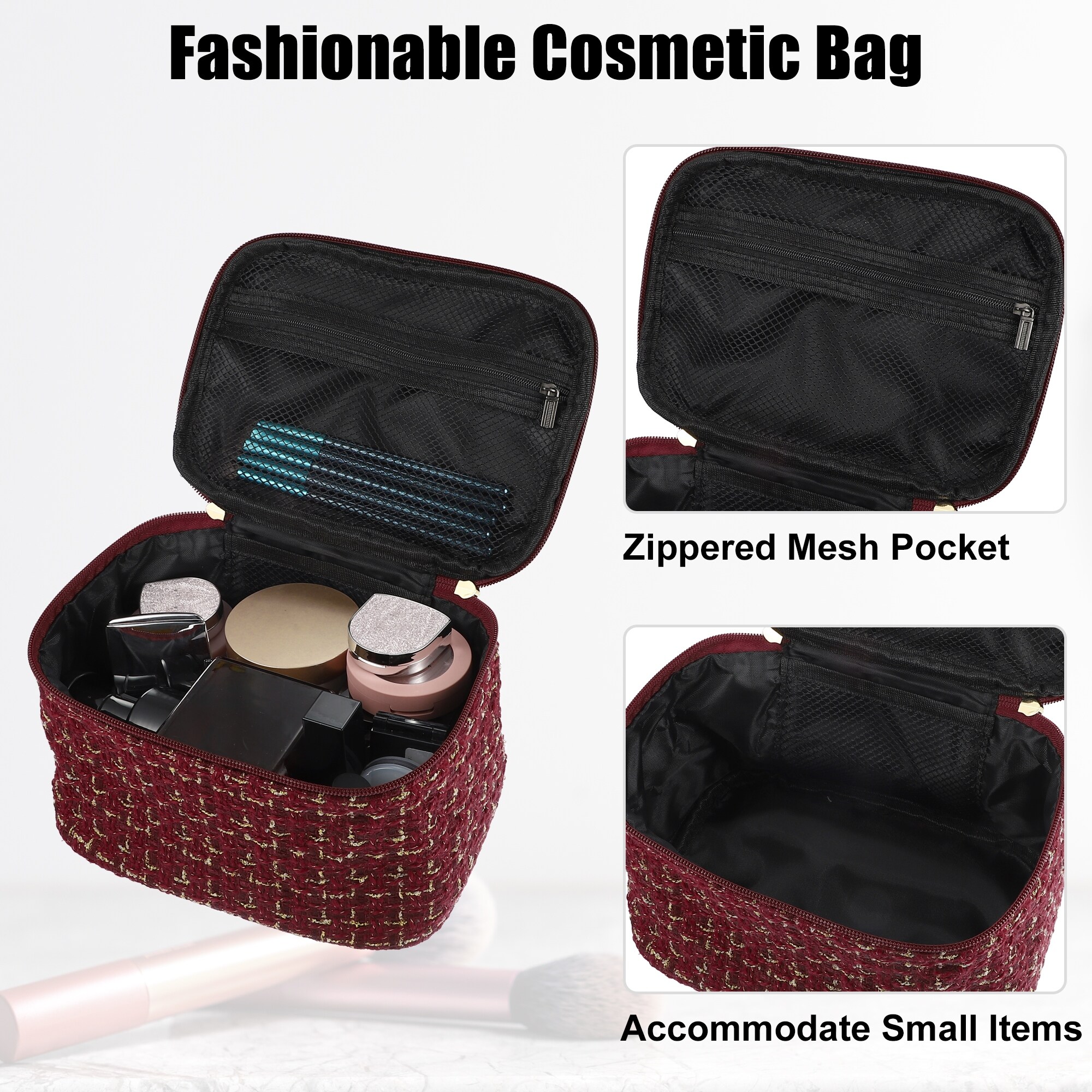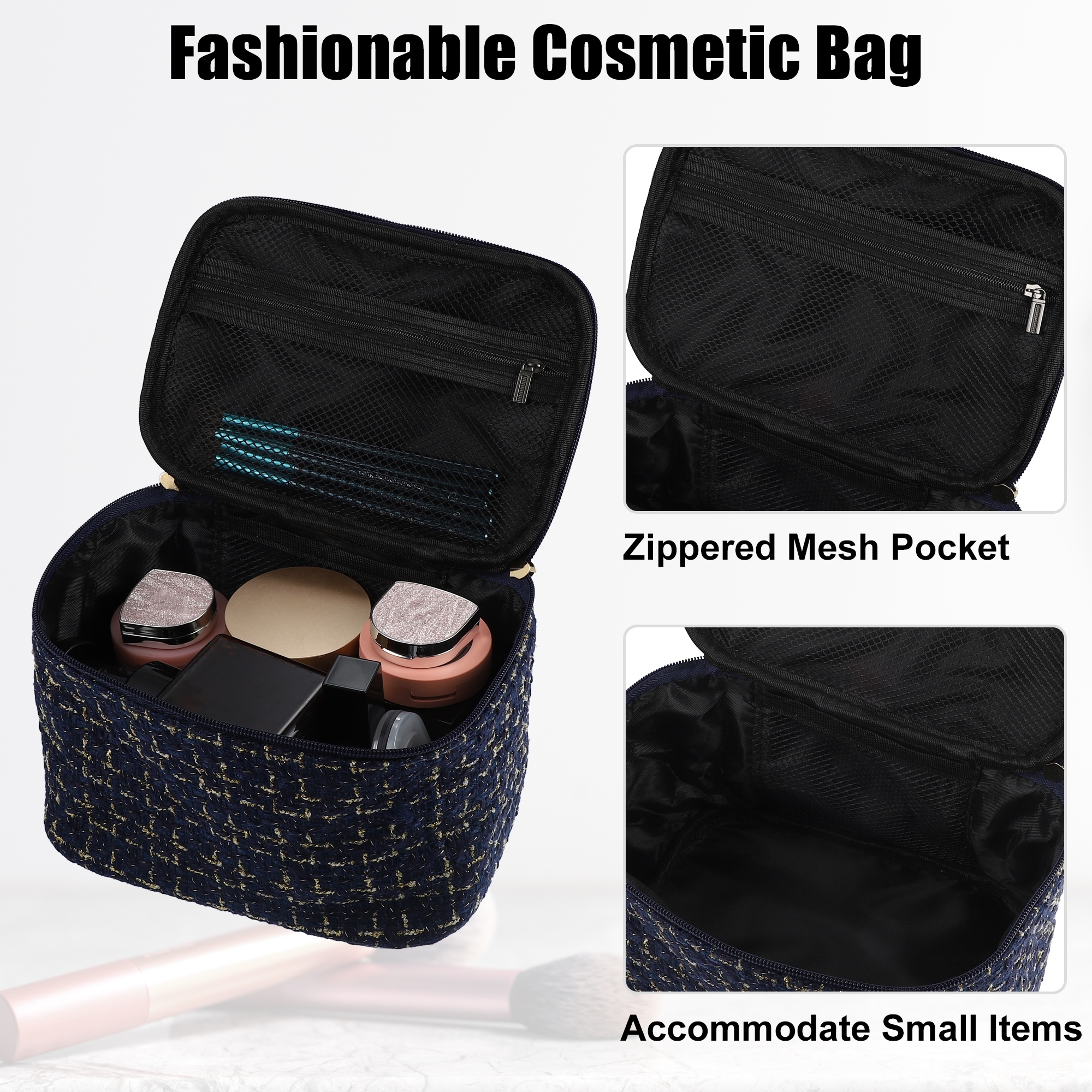 Makeup Bag Large Cosmetic Travel Bag Woolen Organizer Bag Plaid Pattern