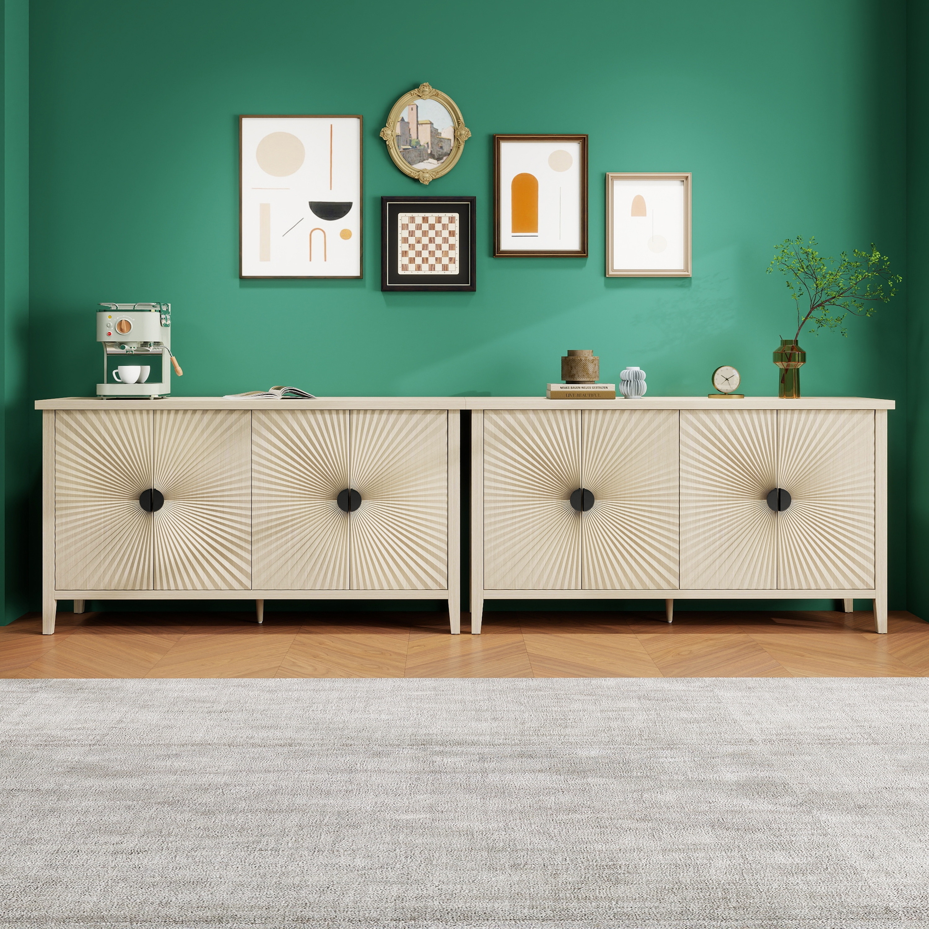Roomfitters Modern 4 Door Sideboard, Buffet Cabinet with Carved Storage, Coffee Bar Cabinet with Adjustable Shelf, Natural