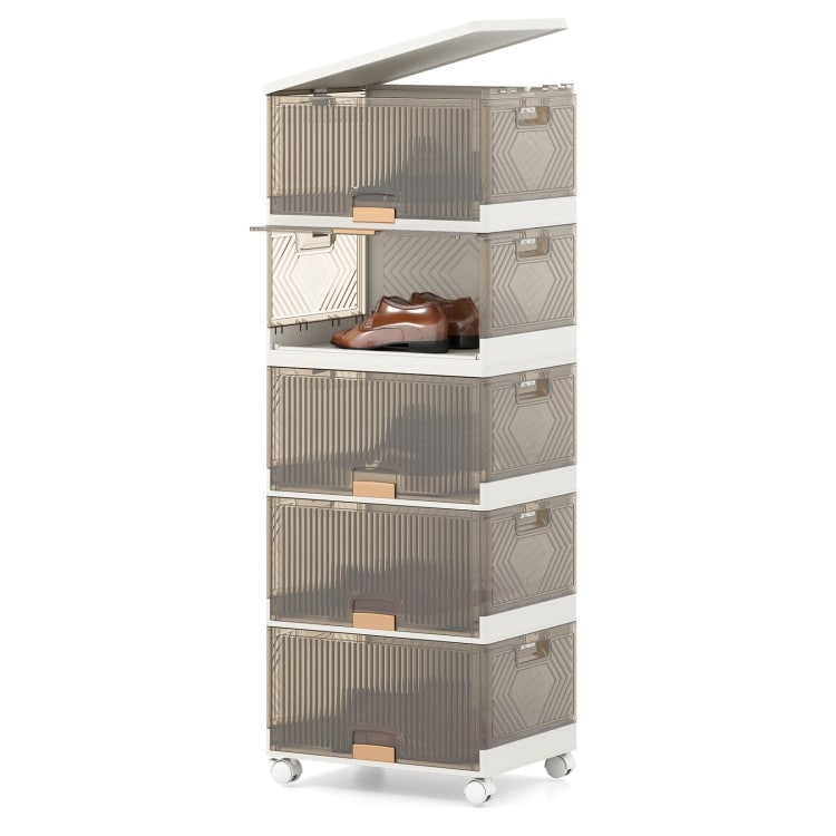 White-Brown PP and ABS Stackable Storage Bin with Wheels, Foldable Cubes