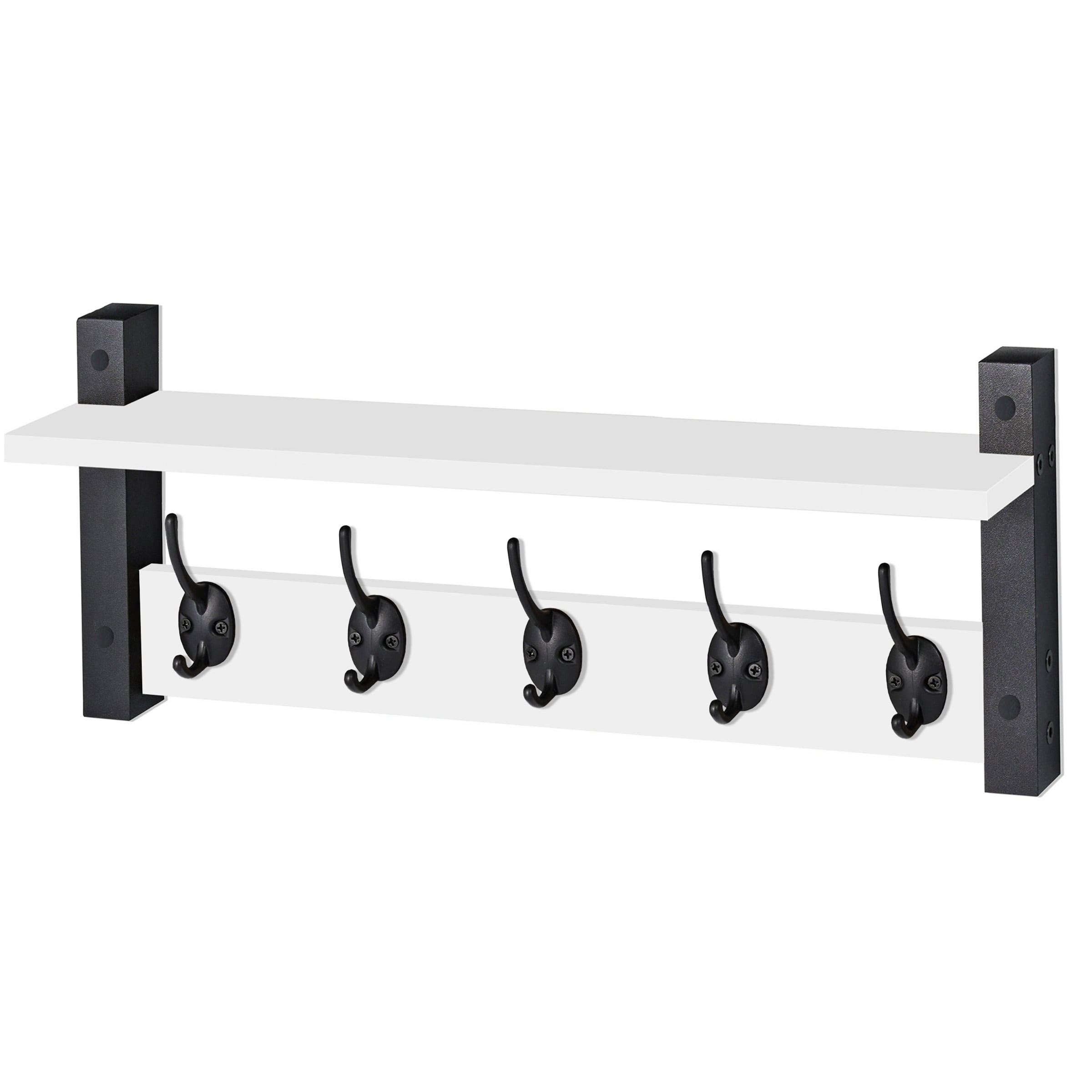 Sorbus Coat Hooks Wall Mount Floating Shelf with 5 Heavy Duty Hooks, Large and Extra Large