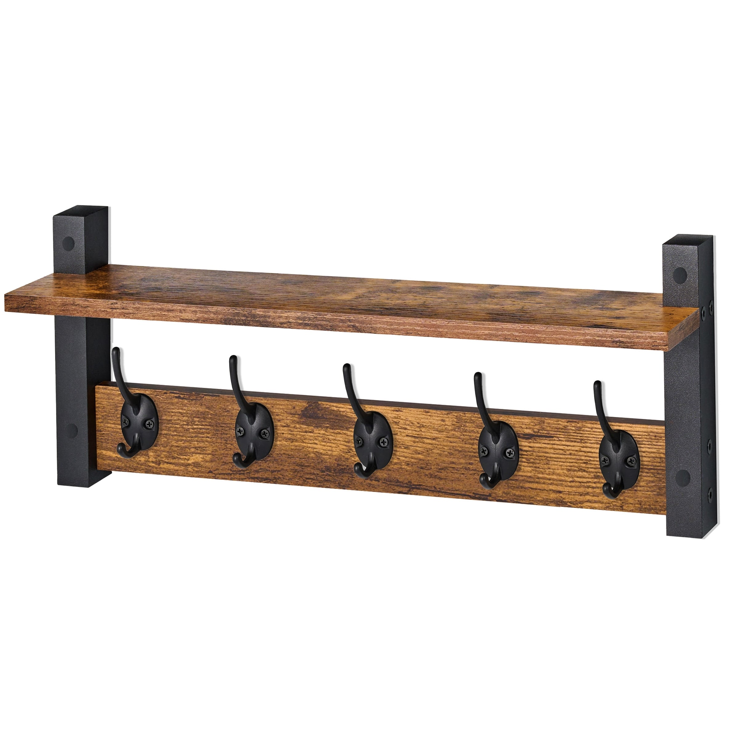 Sorbus Coat Hooks Wall Mount Floating Shelf with 5 Heavy Duty Hooks, Large and Extra Large