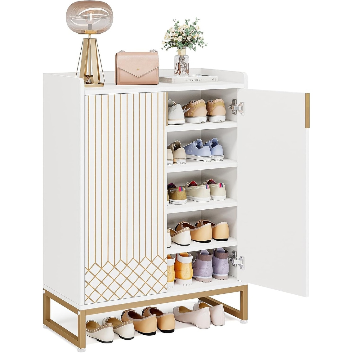 White 5 Tier Shoe Cabinet with Steel Legs Diamond Pattern Storage Organizer for 20 to 25 Pairs of Shoes
