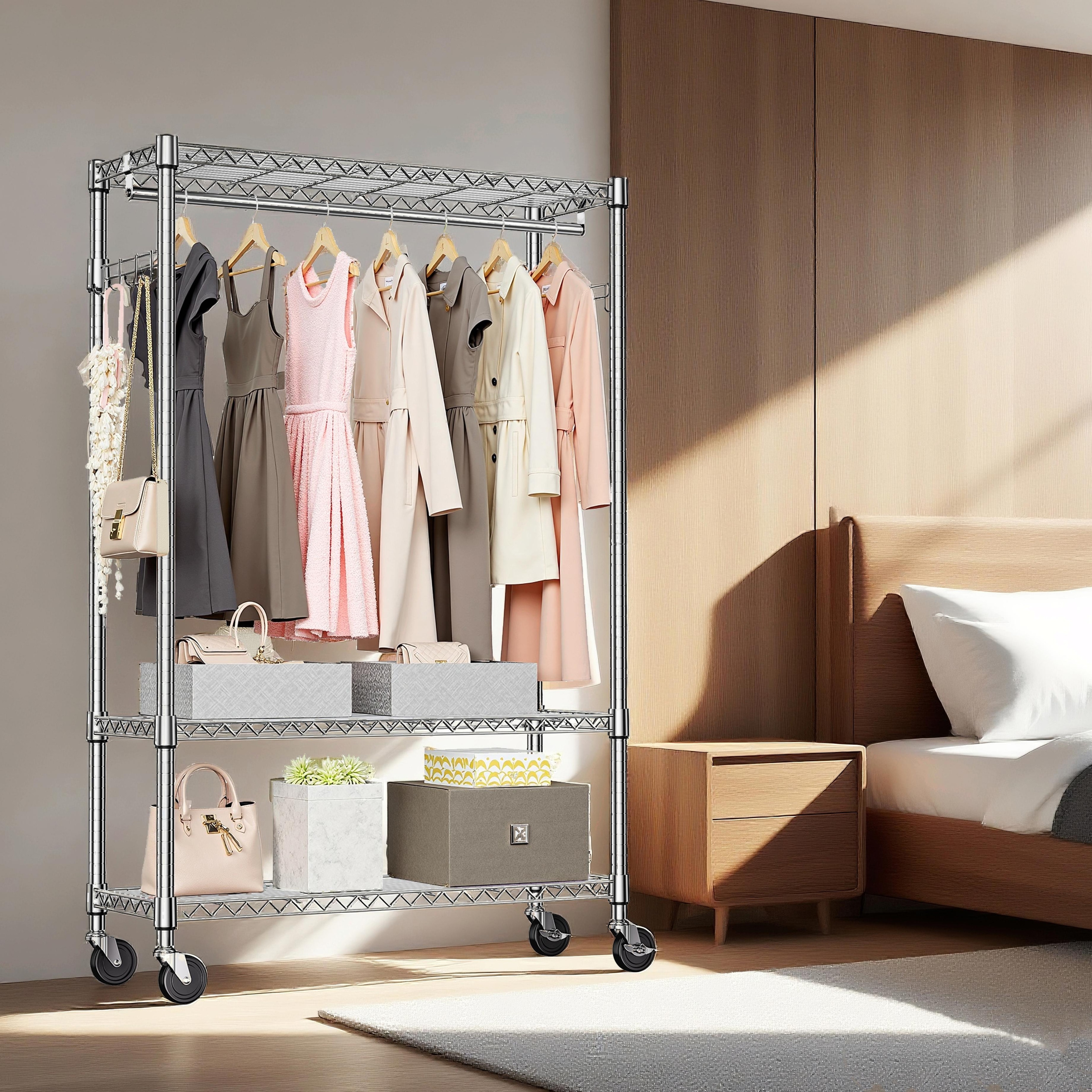 Heavy-Duty Garment Rack - Locking Wheels & Side Hooks
