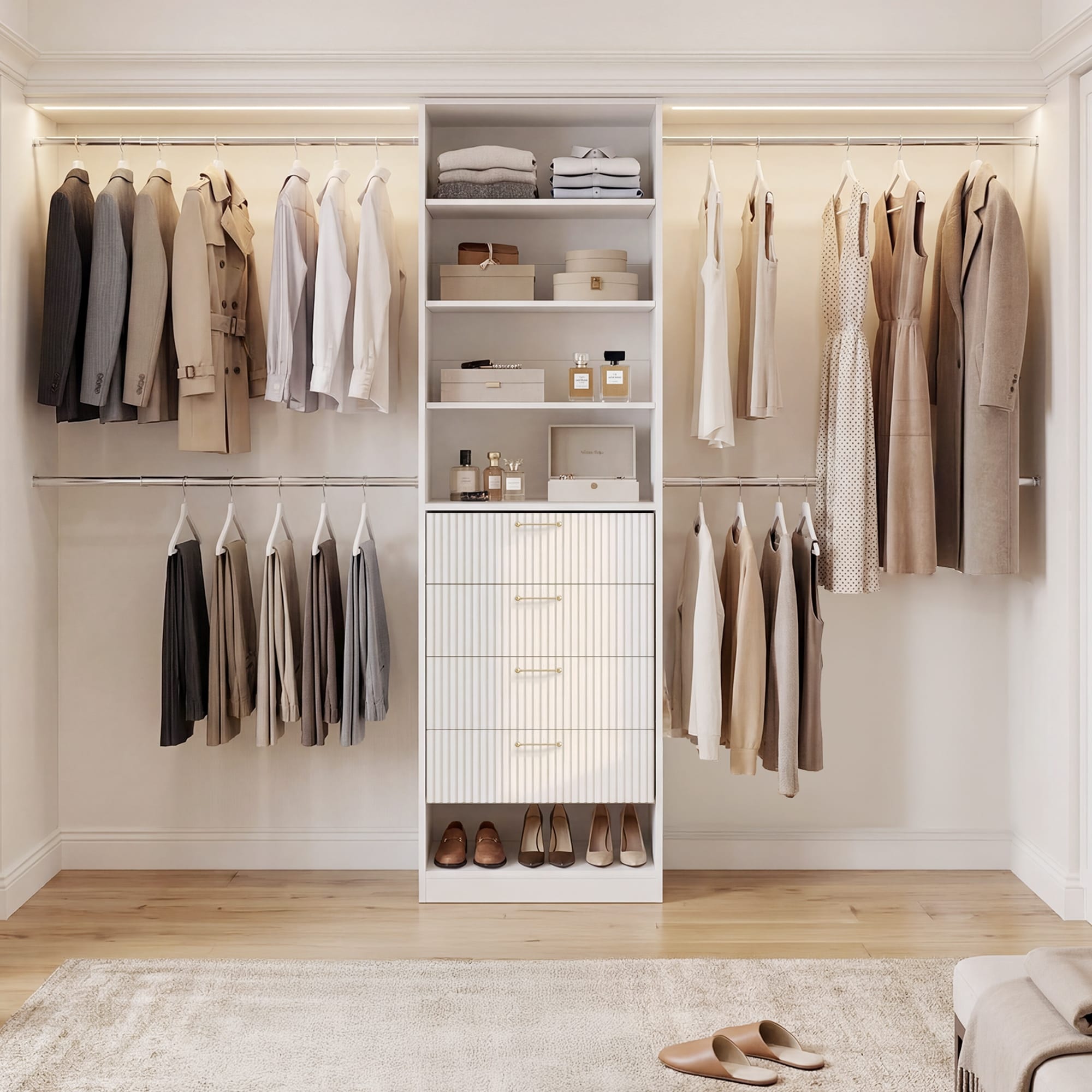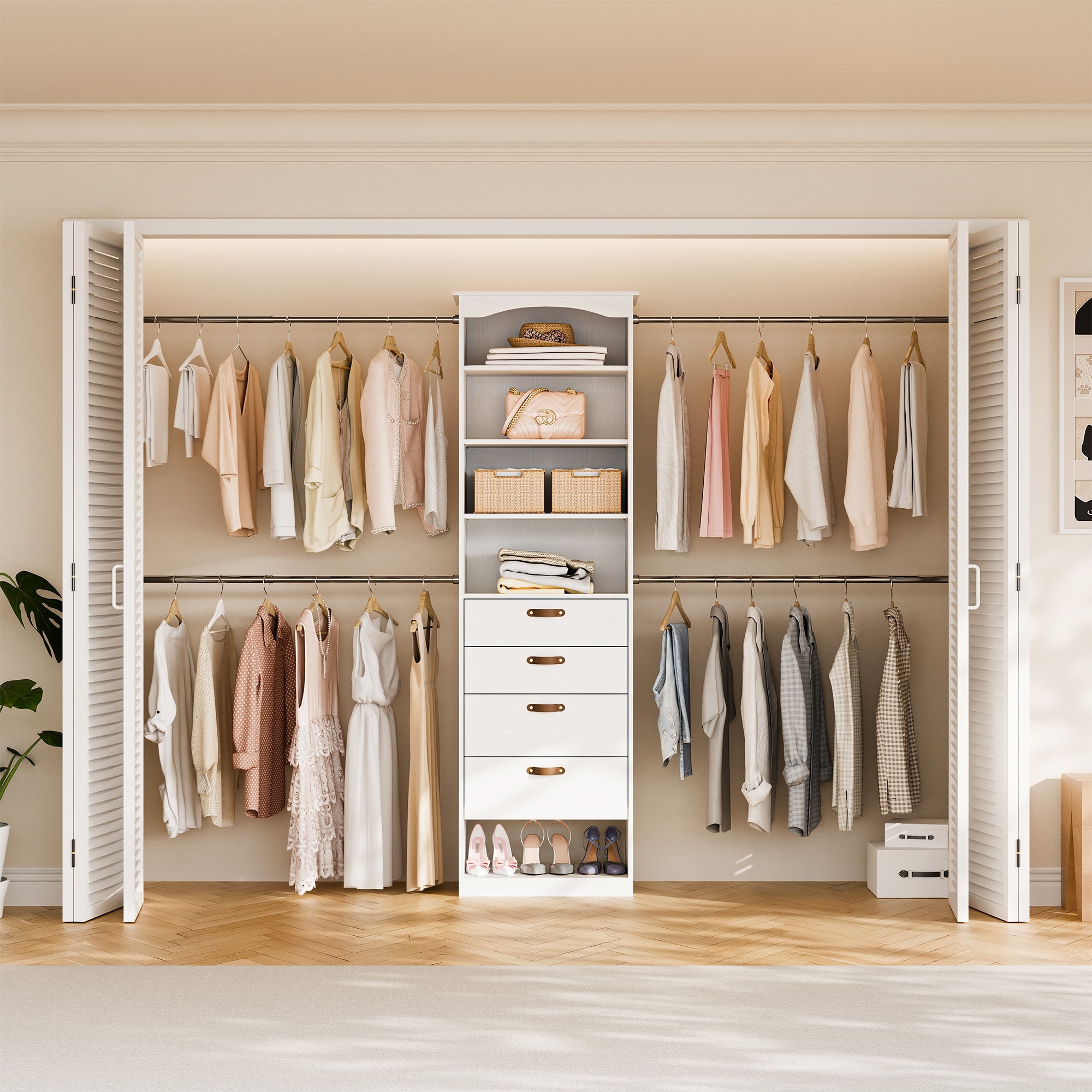 23.6"-143.3" W Modular Closet System Wardrobe Organizer with 4 Drawers & Adjustable Hanging Rods