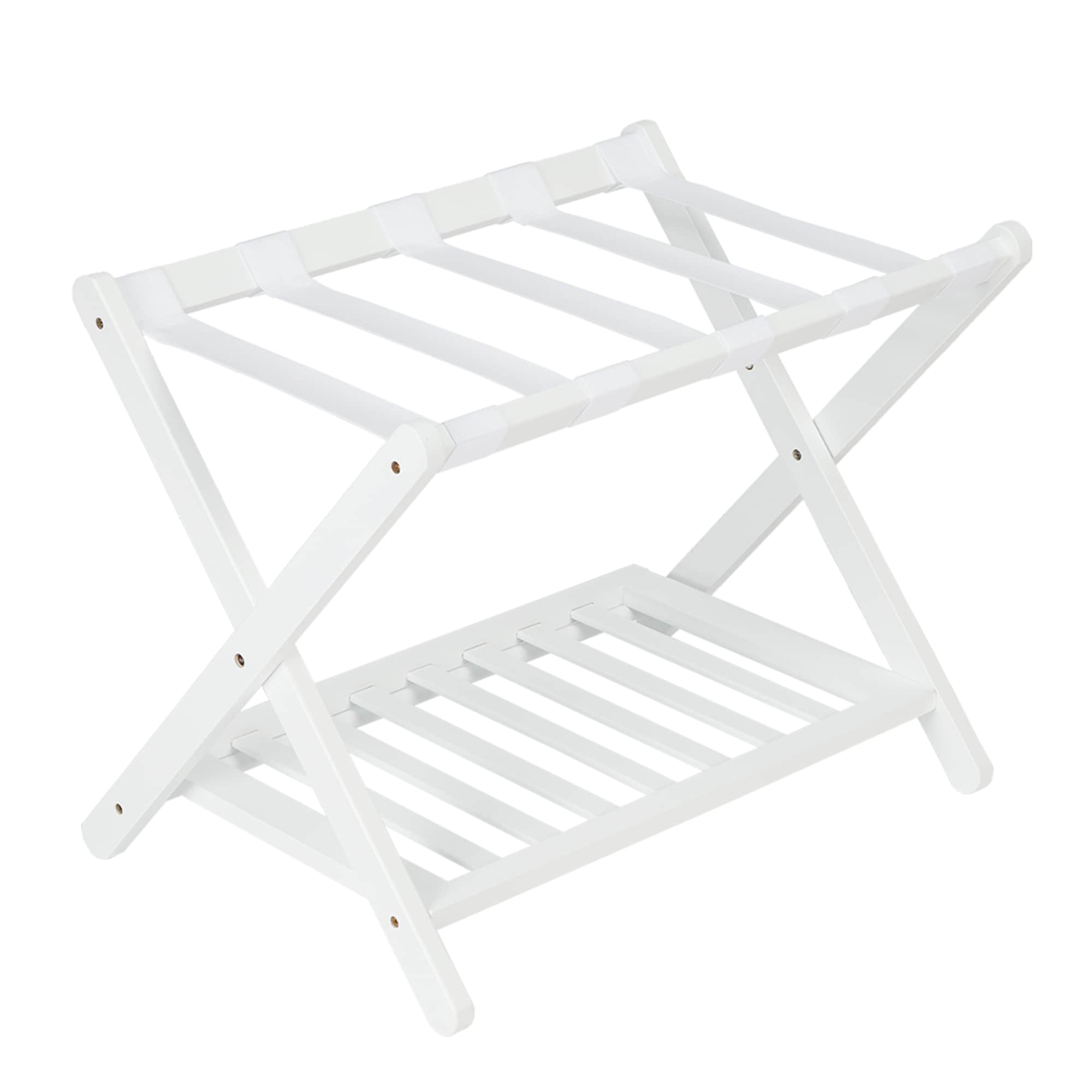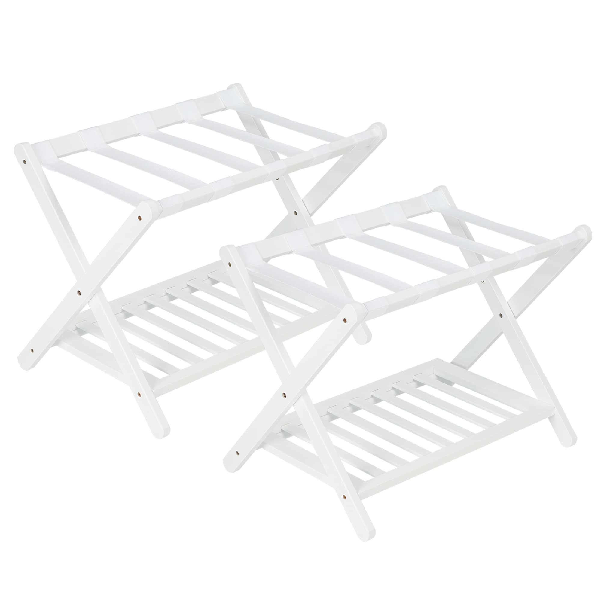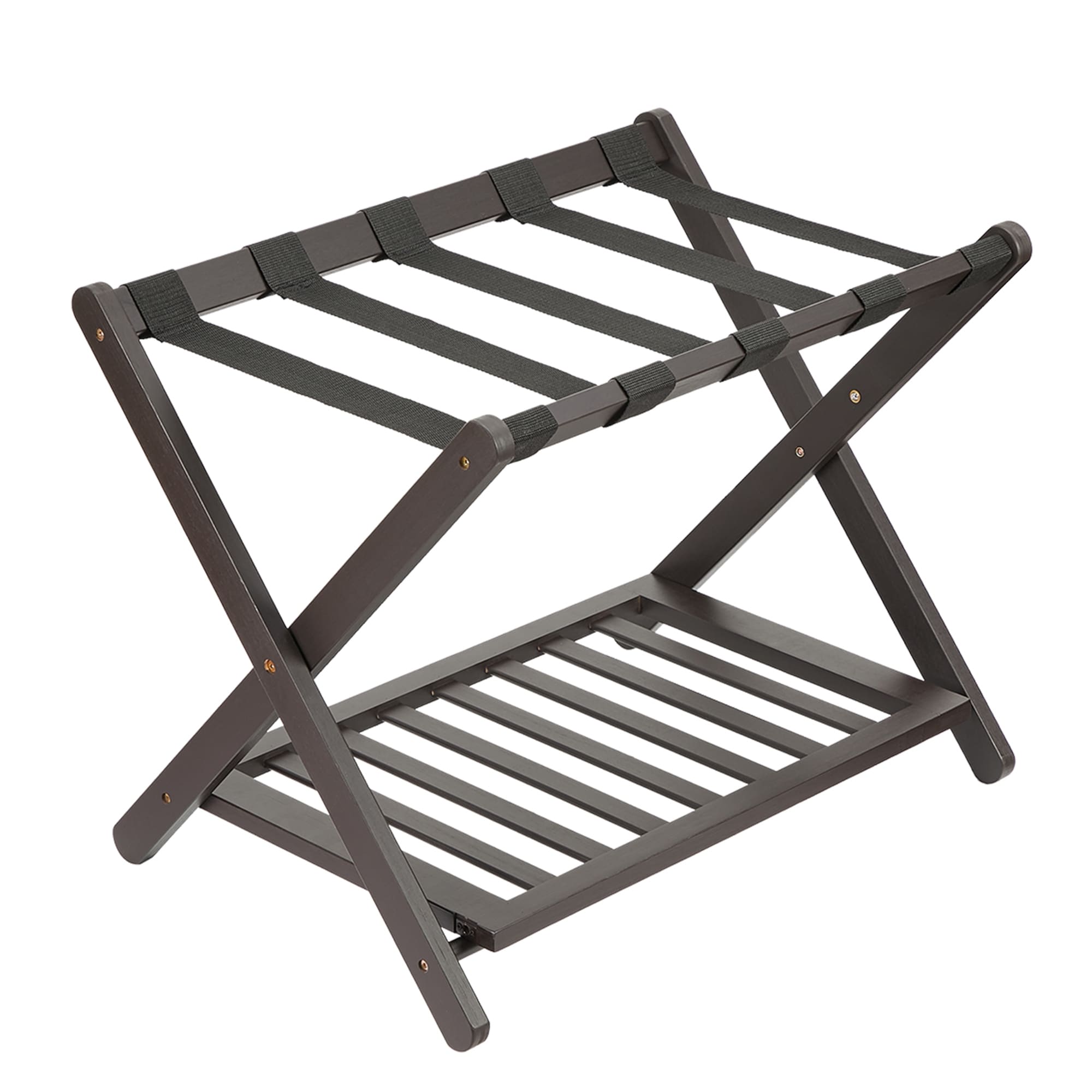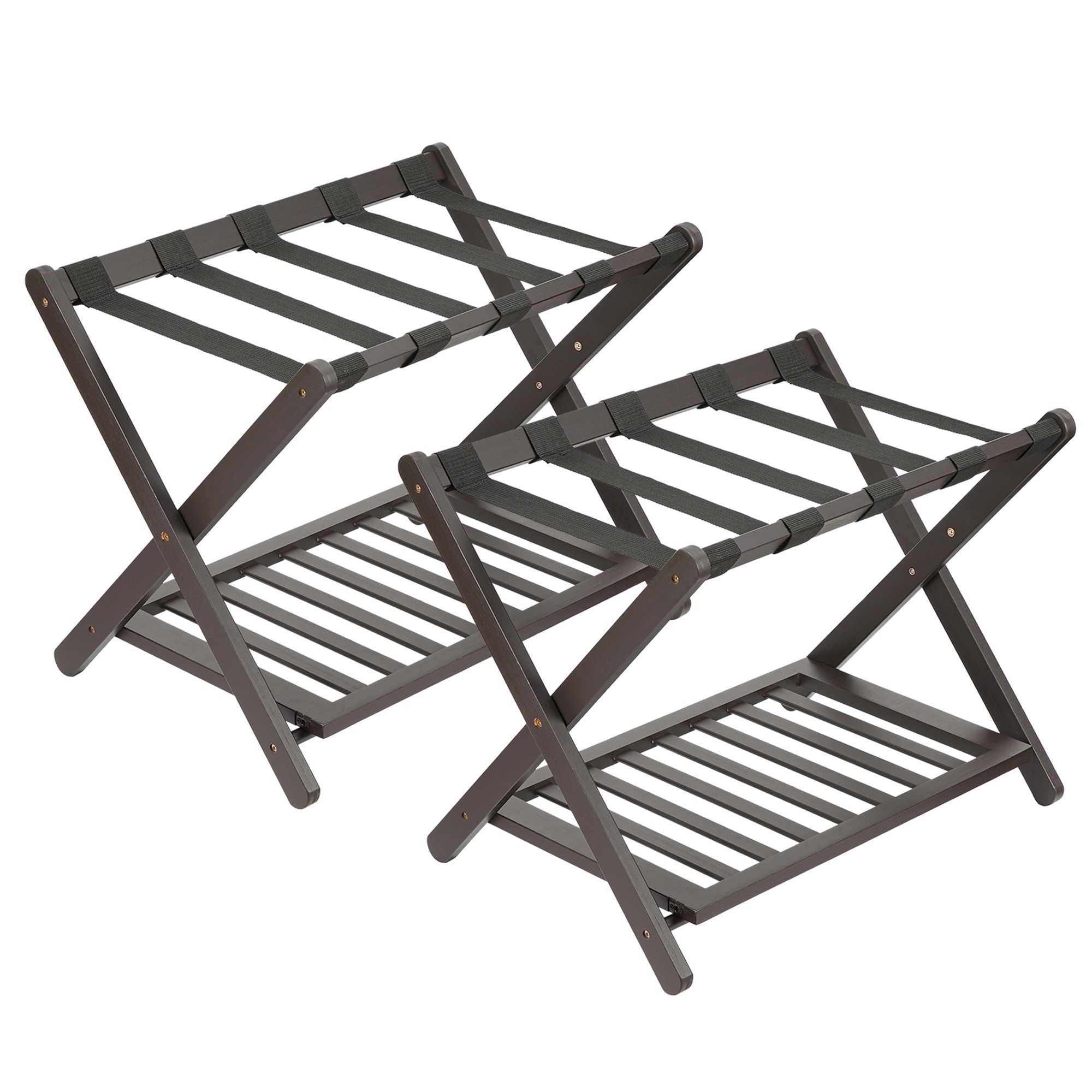 Luggage Rack, Folding Suitcase Stand with Storage Shelf and Nylon Straps