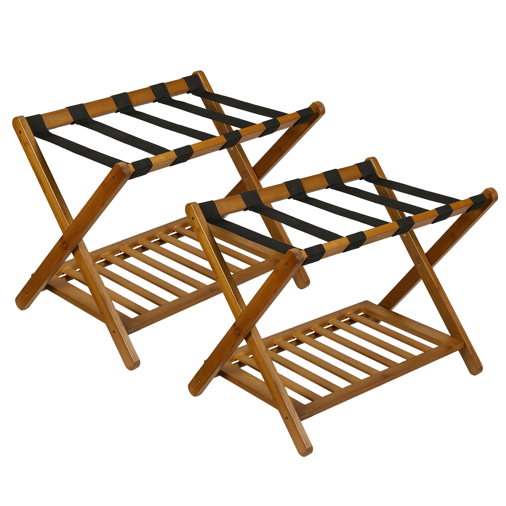 Luggage Rack, Folding Suitcase Stand with Storage Shelf and Nylon Straps