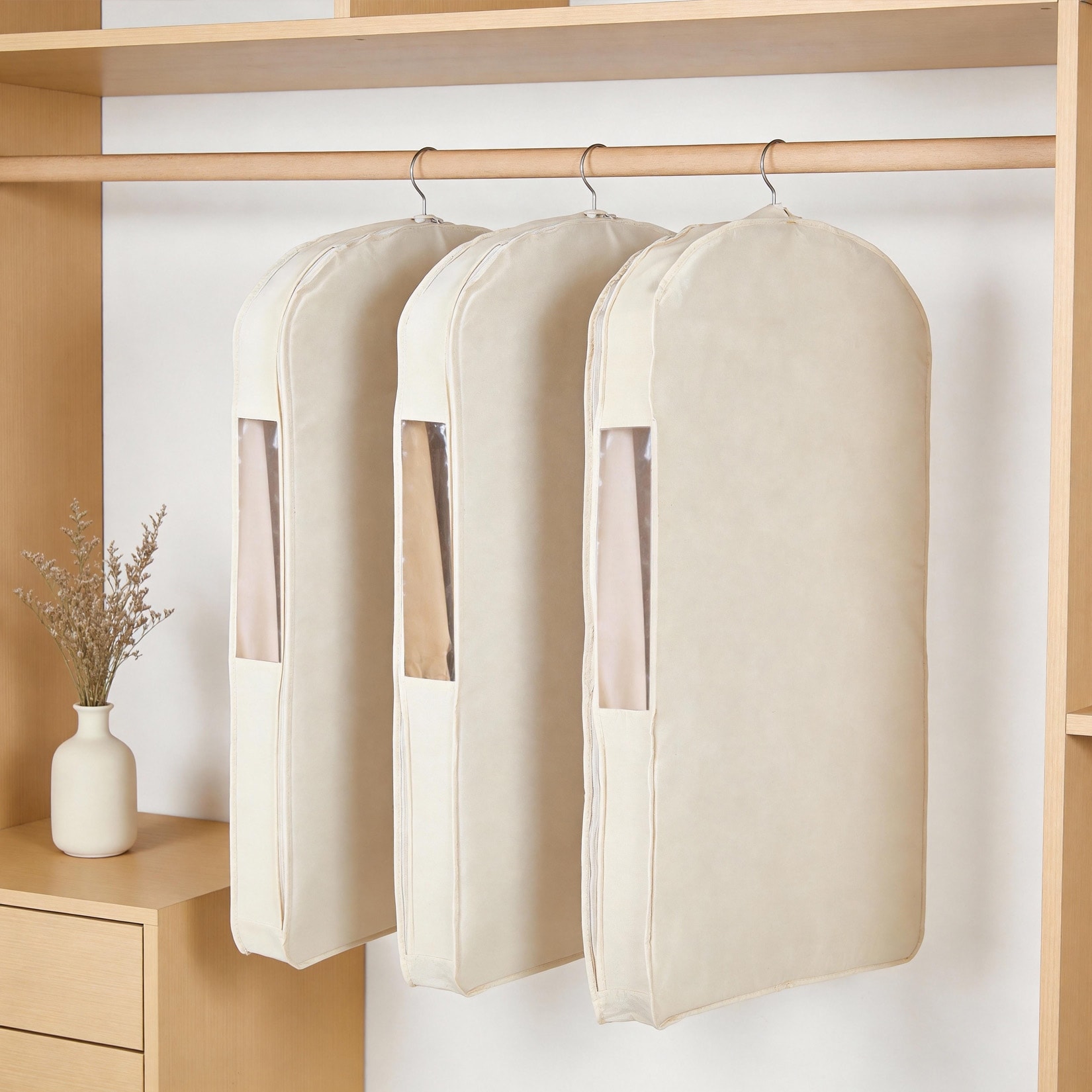 Organic Cotton Breathable Hanging Garment Bag 42x24x4, Dust Cover Storage for Dresses, Suits & Jackets, Closet Organizer