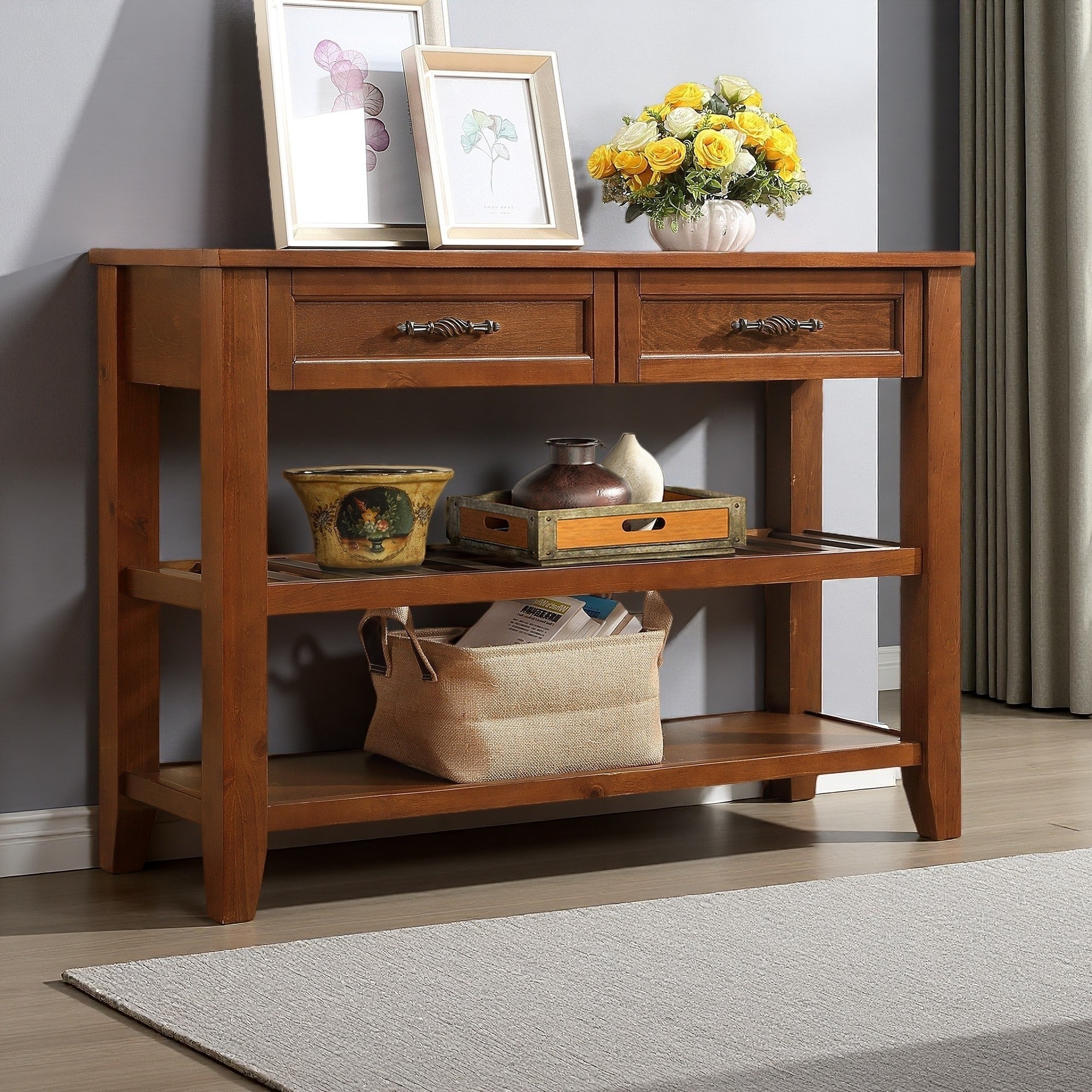42" Solid Wood Buffet Console Table with 2 Drawers & Shelves