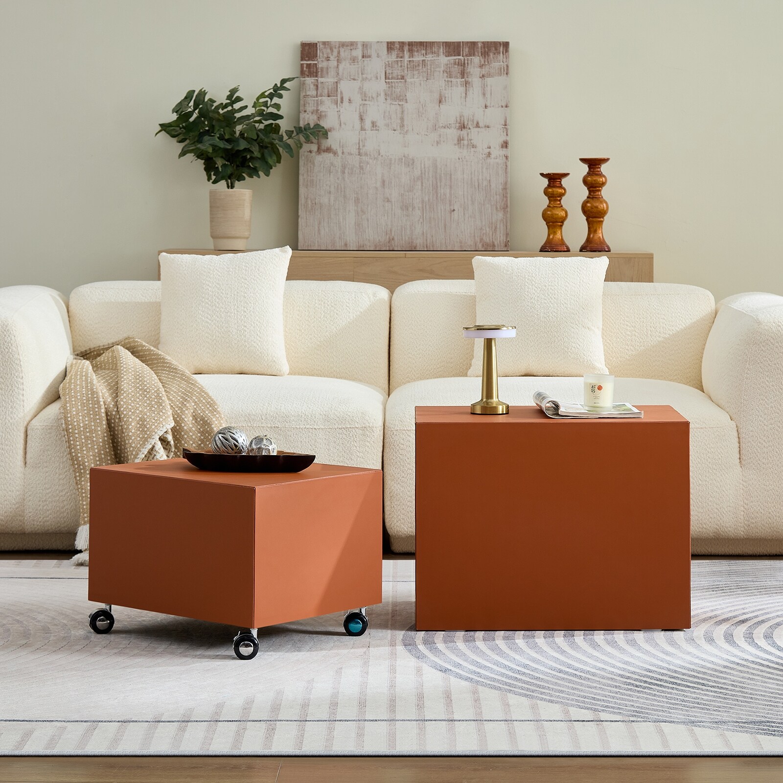 Rossetta Modern Small Rectangle Vibrant Color Hue Saddle Leather Table Set of 2