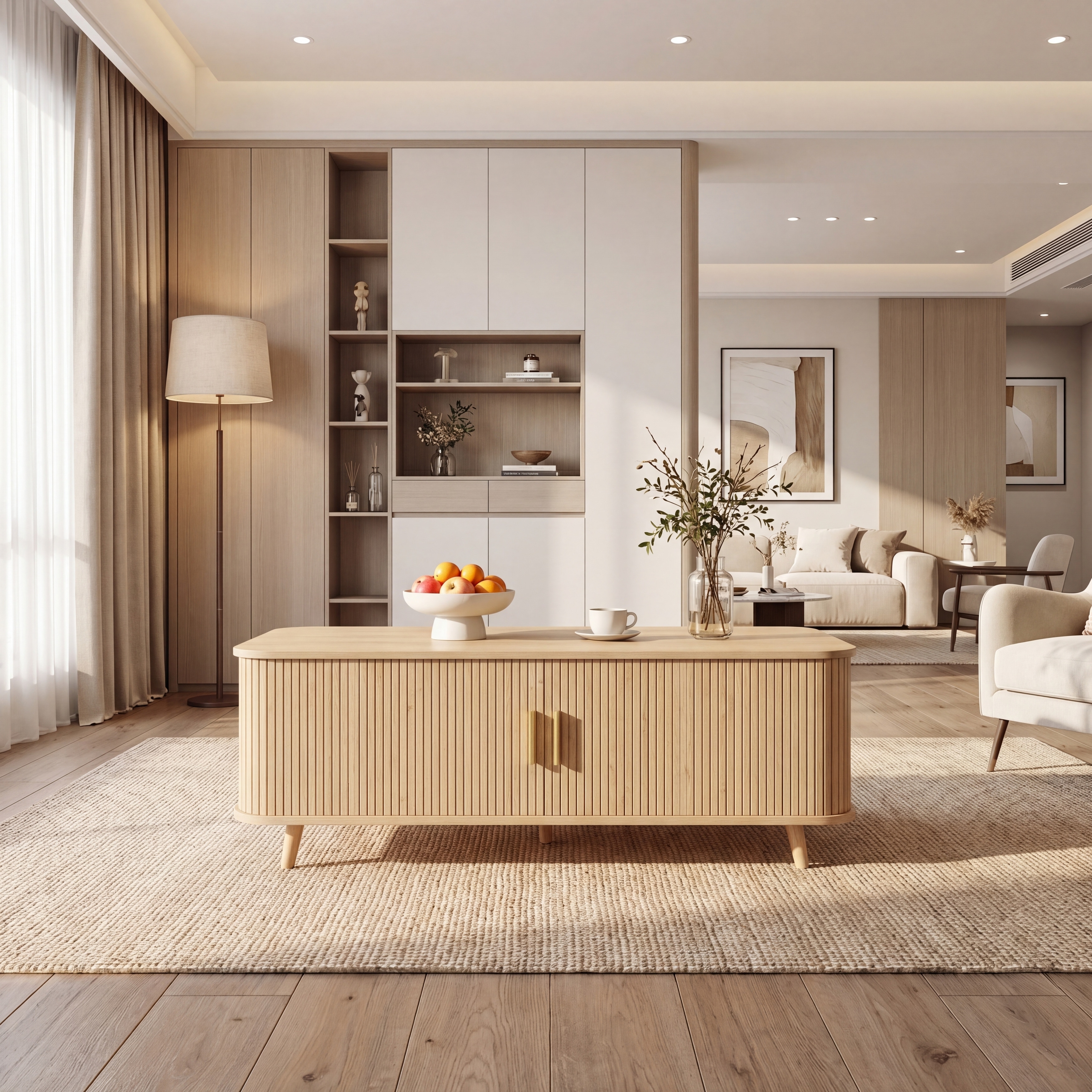 Modern Coffee Table Wooden Accent Center Tables w/ Sliding Doors