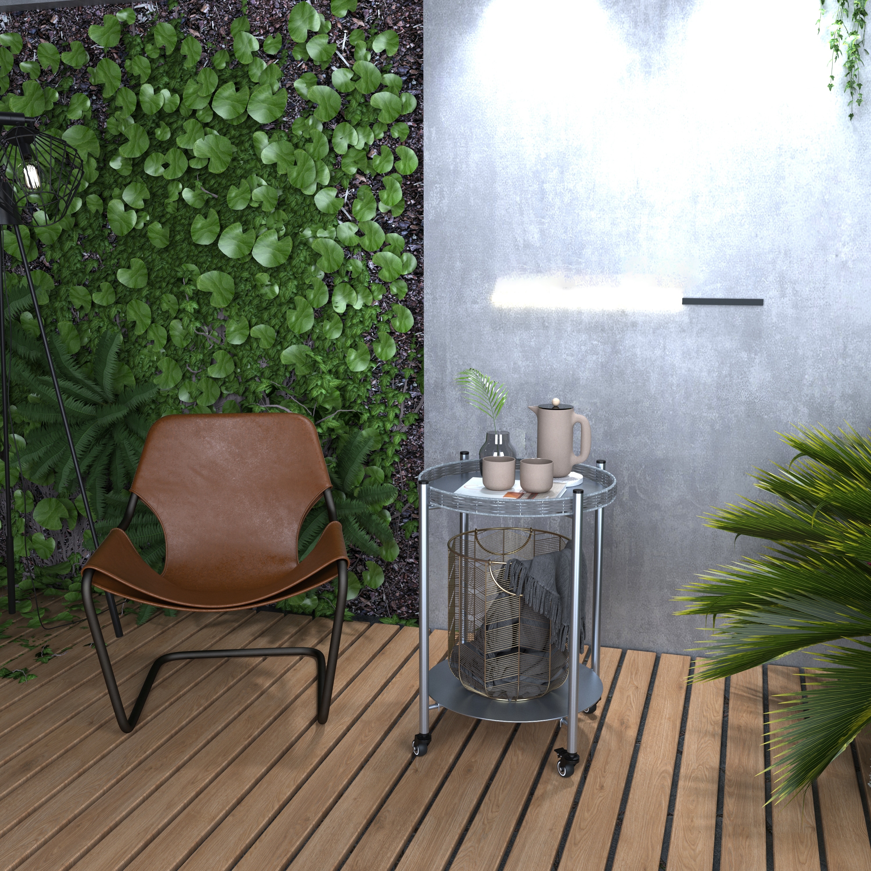 Round Coffee Table With Wheels 2-Tier Movable Side Tables
