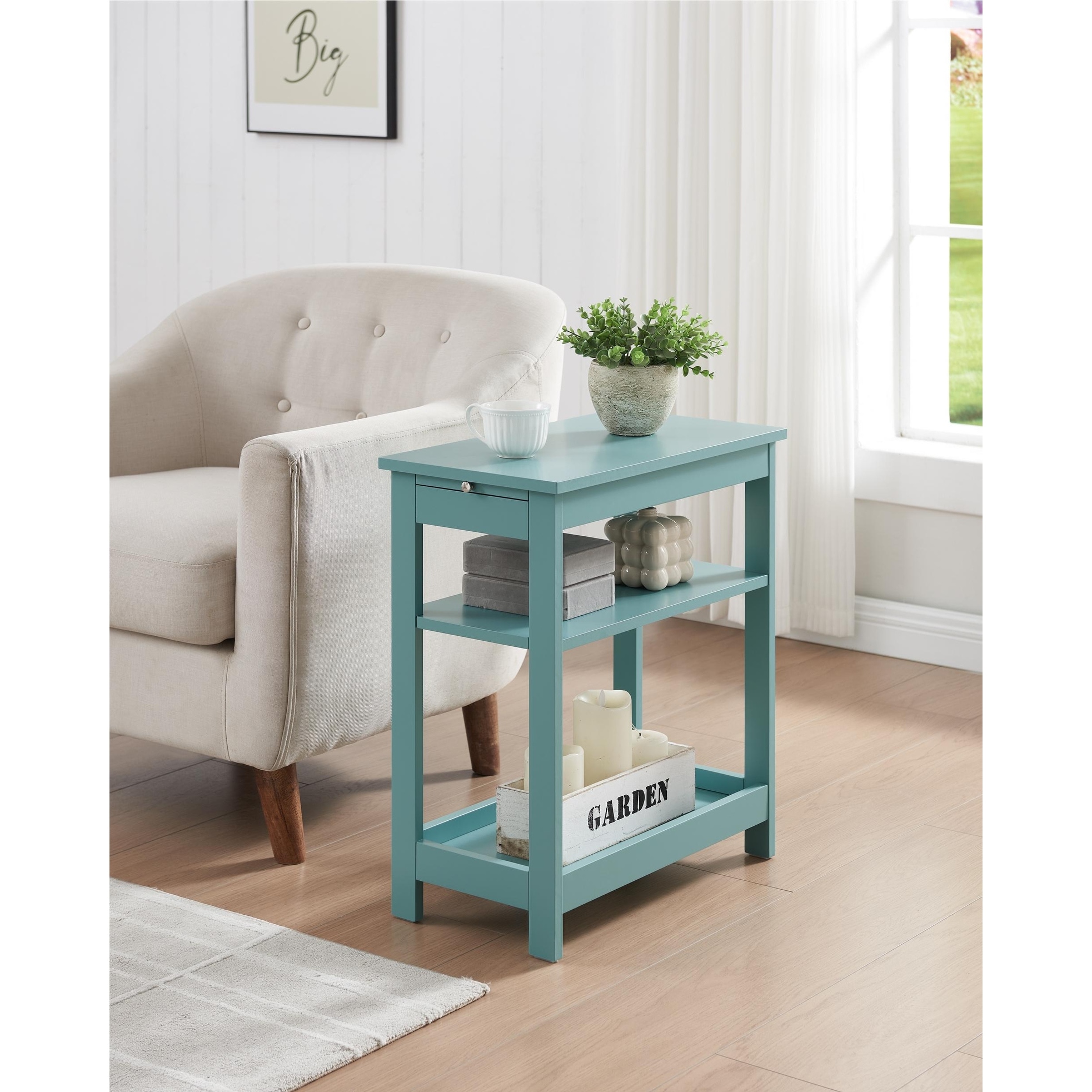 Slim Side End Table with Storage Shelves & Pull-Out Tray