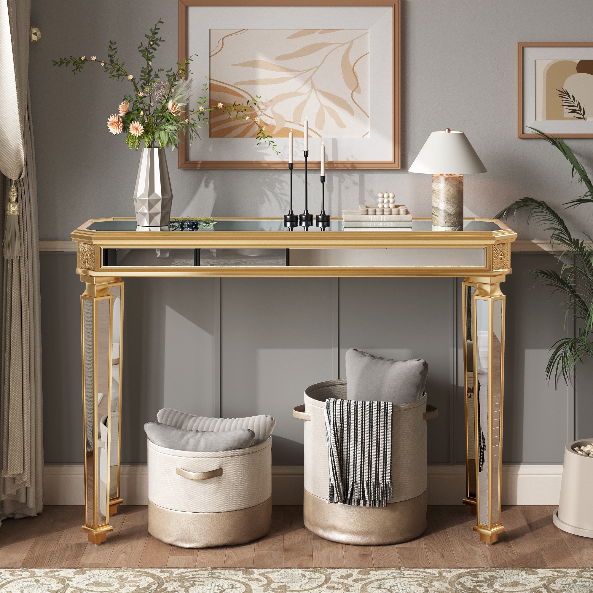 Vintage Mirror Console Table for Entryway