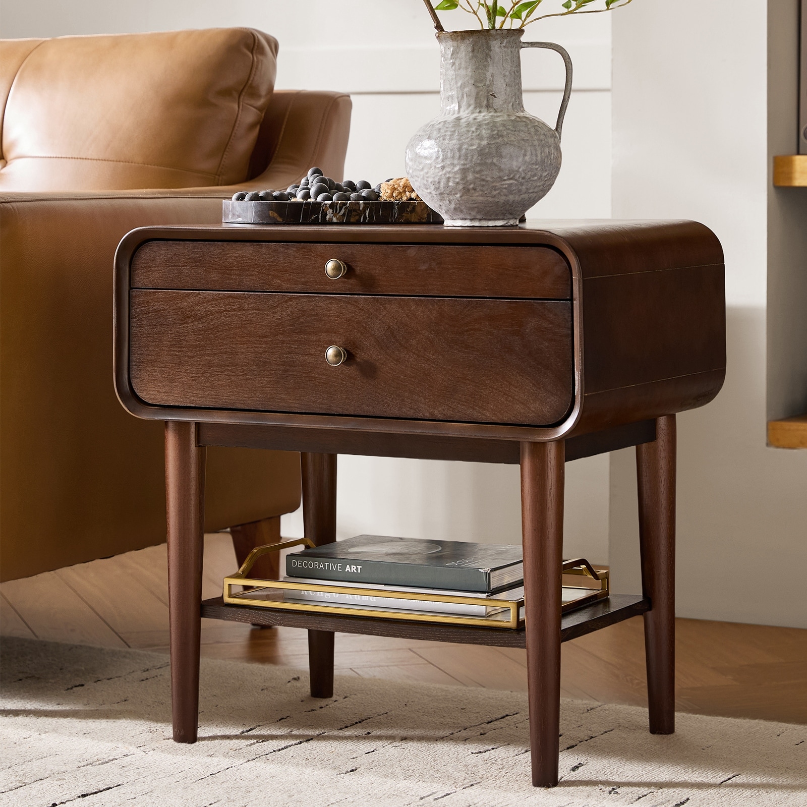 HULALA HOME Mid-century Modern Solid Wood 24"Tall 2-Drawer End Table