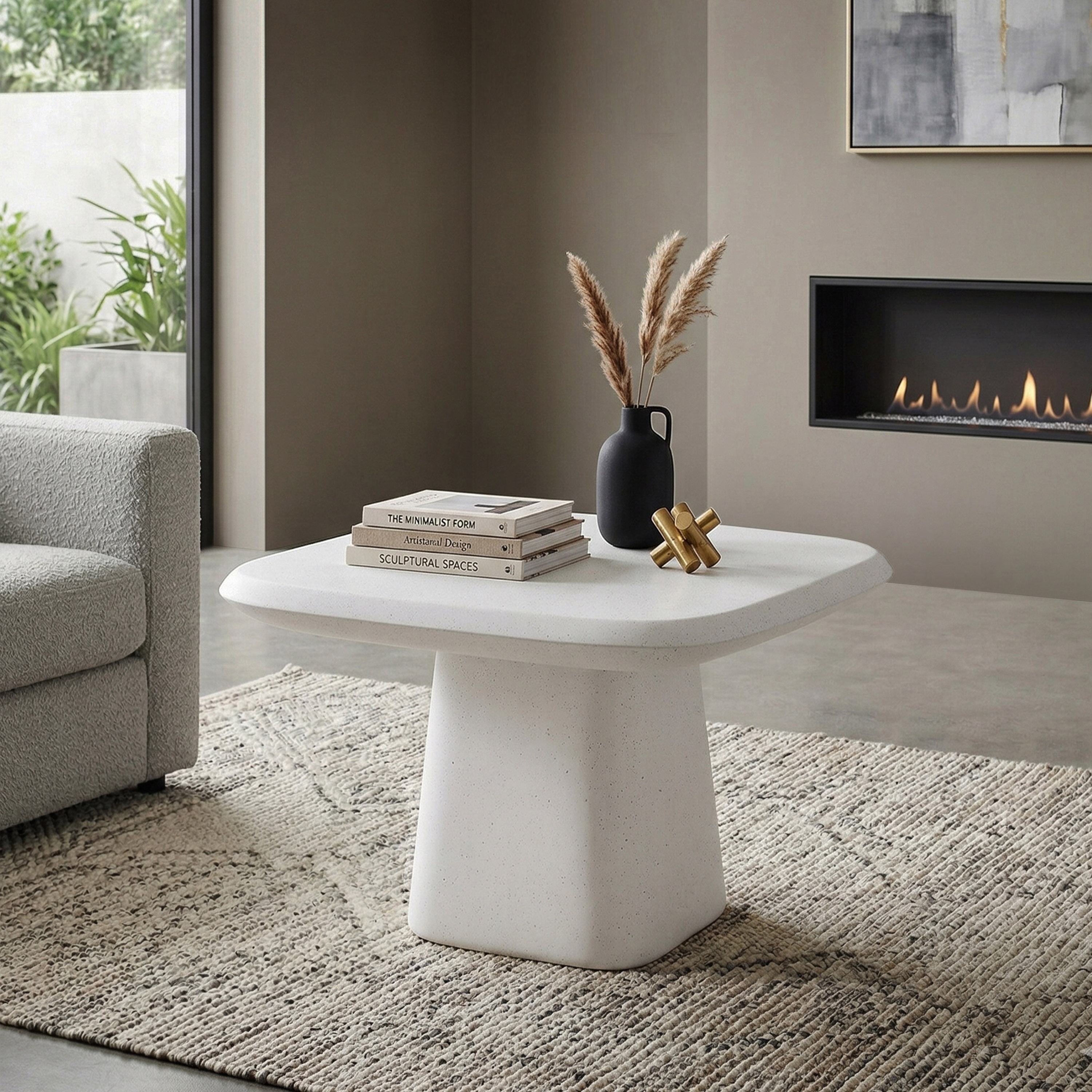 Furniture of America Pebba Modern White Ceramic 28-inch Pedestal Base Coffee Table