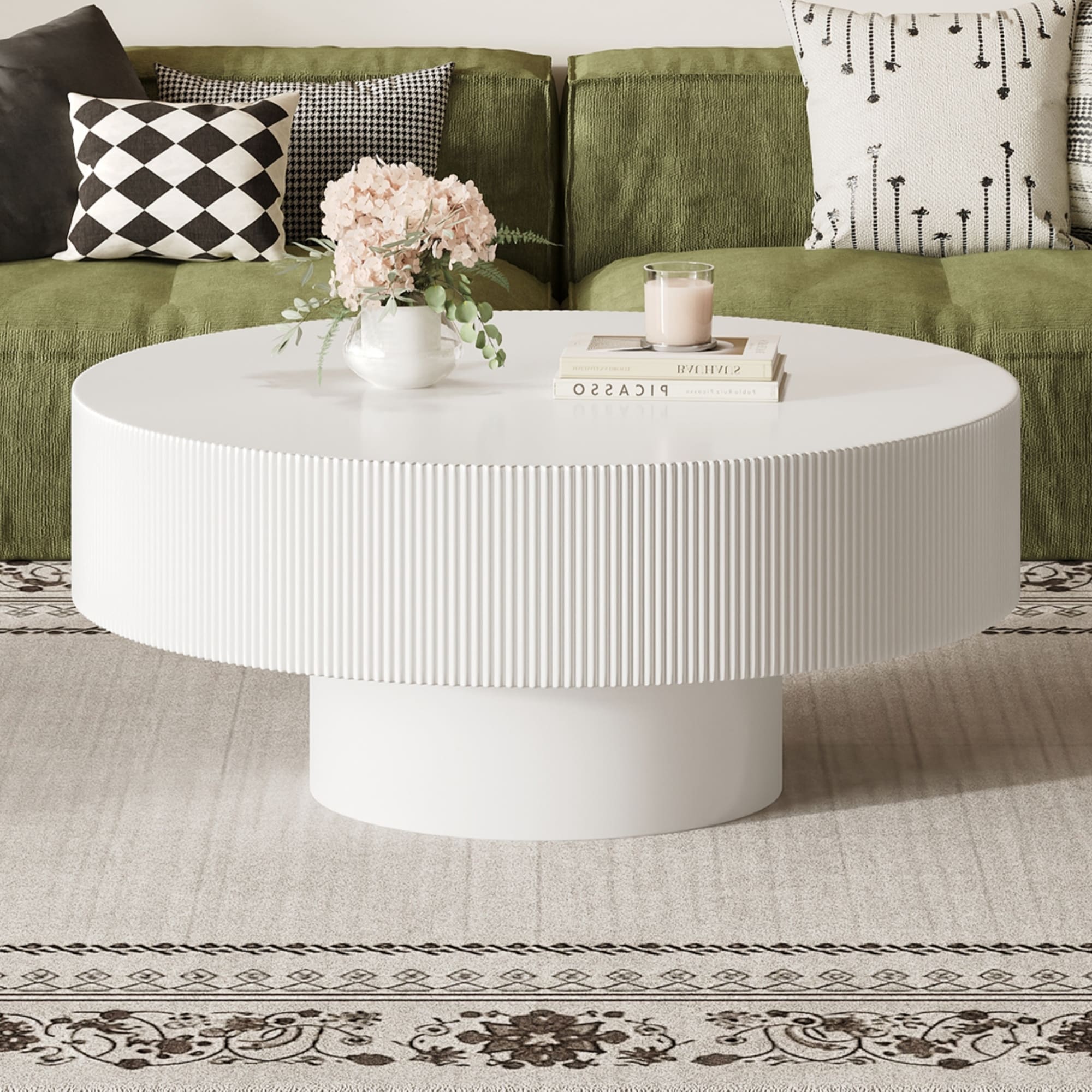 35.43" MDF Round Sleek Handcrafted Relief Coffee Table with Durable Finish and Modern Multi-Use