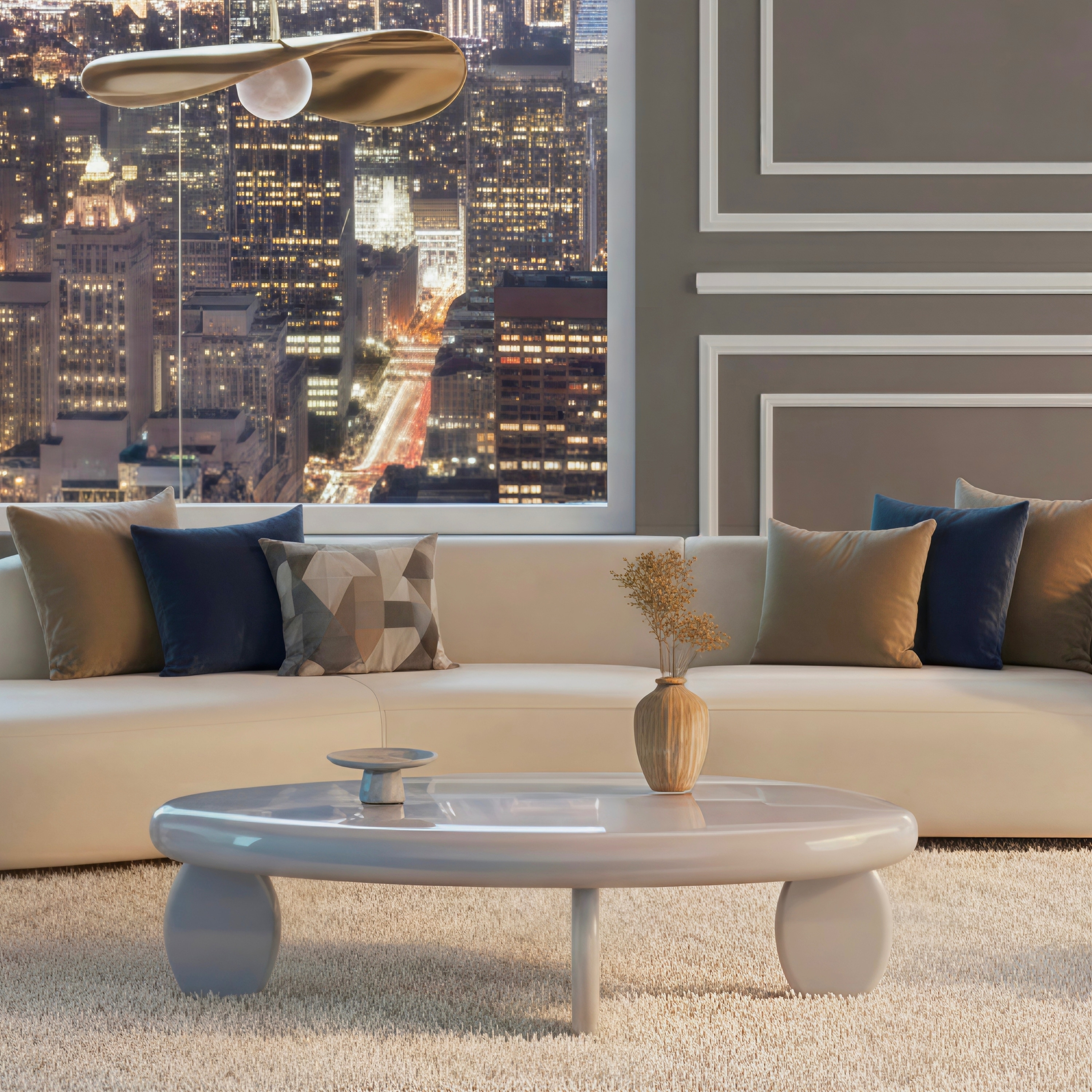 46" X 29" X 12" Modern Cobblestone Coffee Table-High Gloss Gray