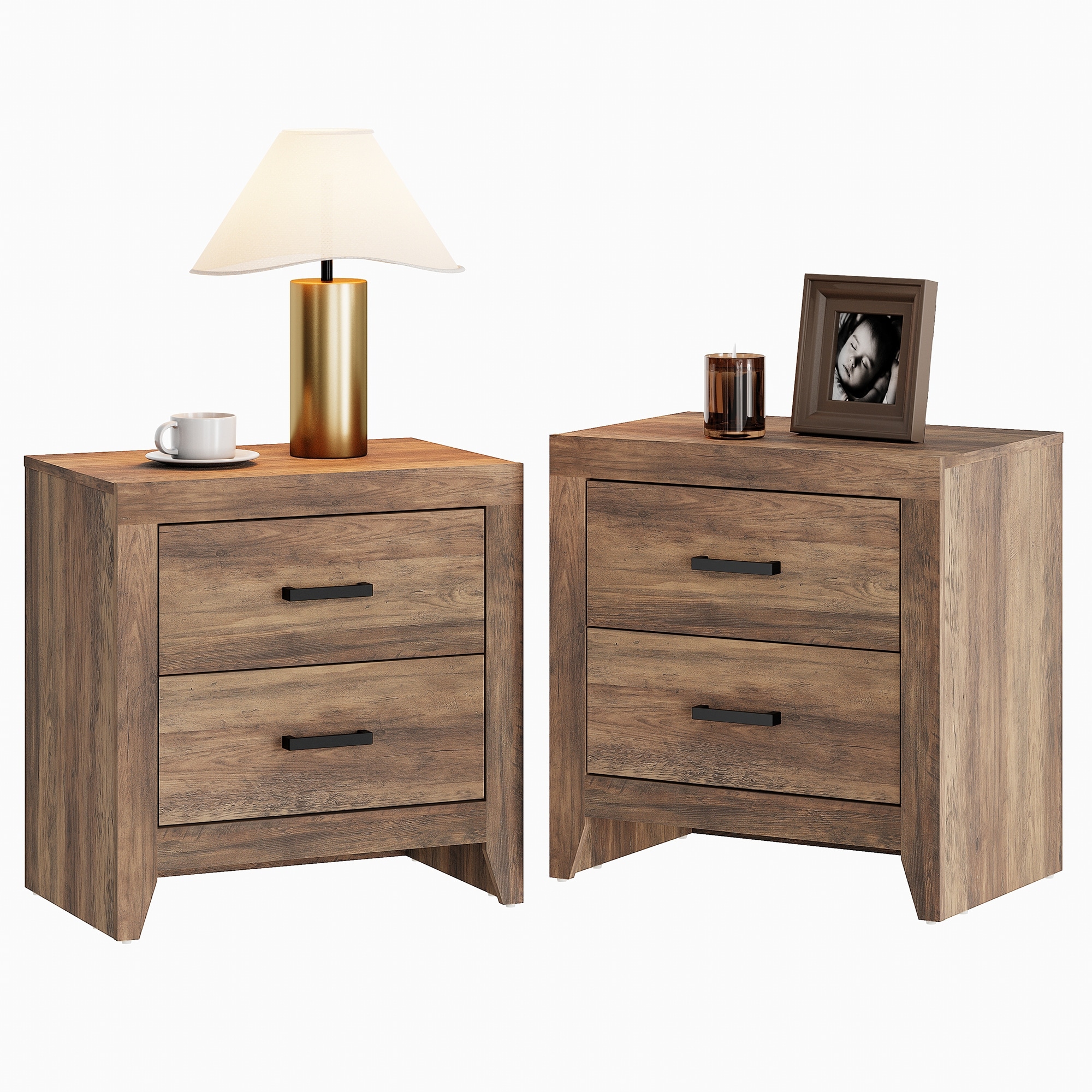 WAMPAT Farmhouse End Table with 2 Storage Drawers - Rustic Brown Accent Table for Bedroom & Living Room