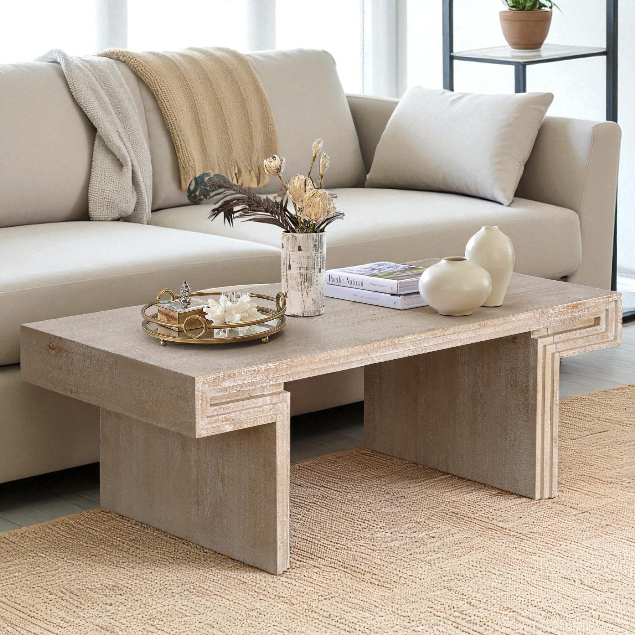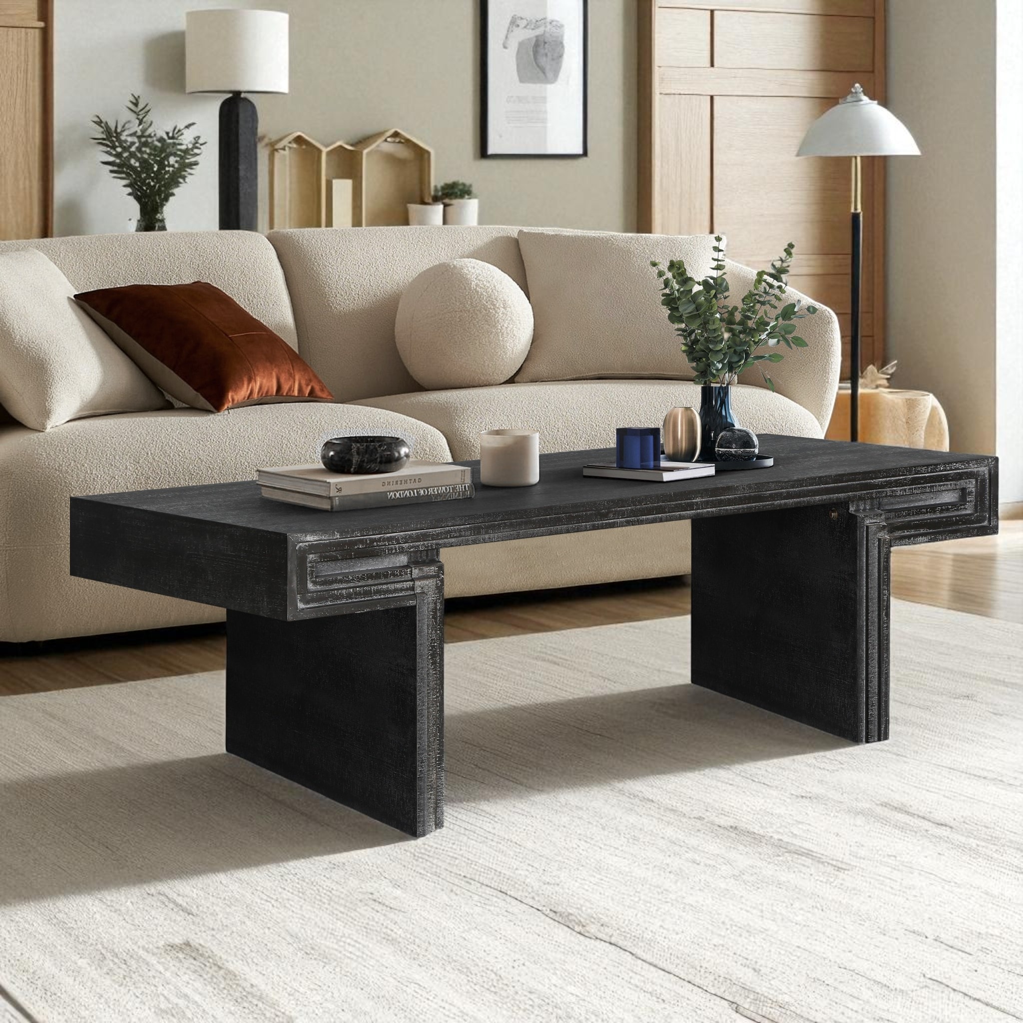 48'' American Vintage Industrial Coffee Table with Dual-Tier Shelves, Wood Veneer Top and Rustic Matte Finish - MDF