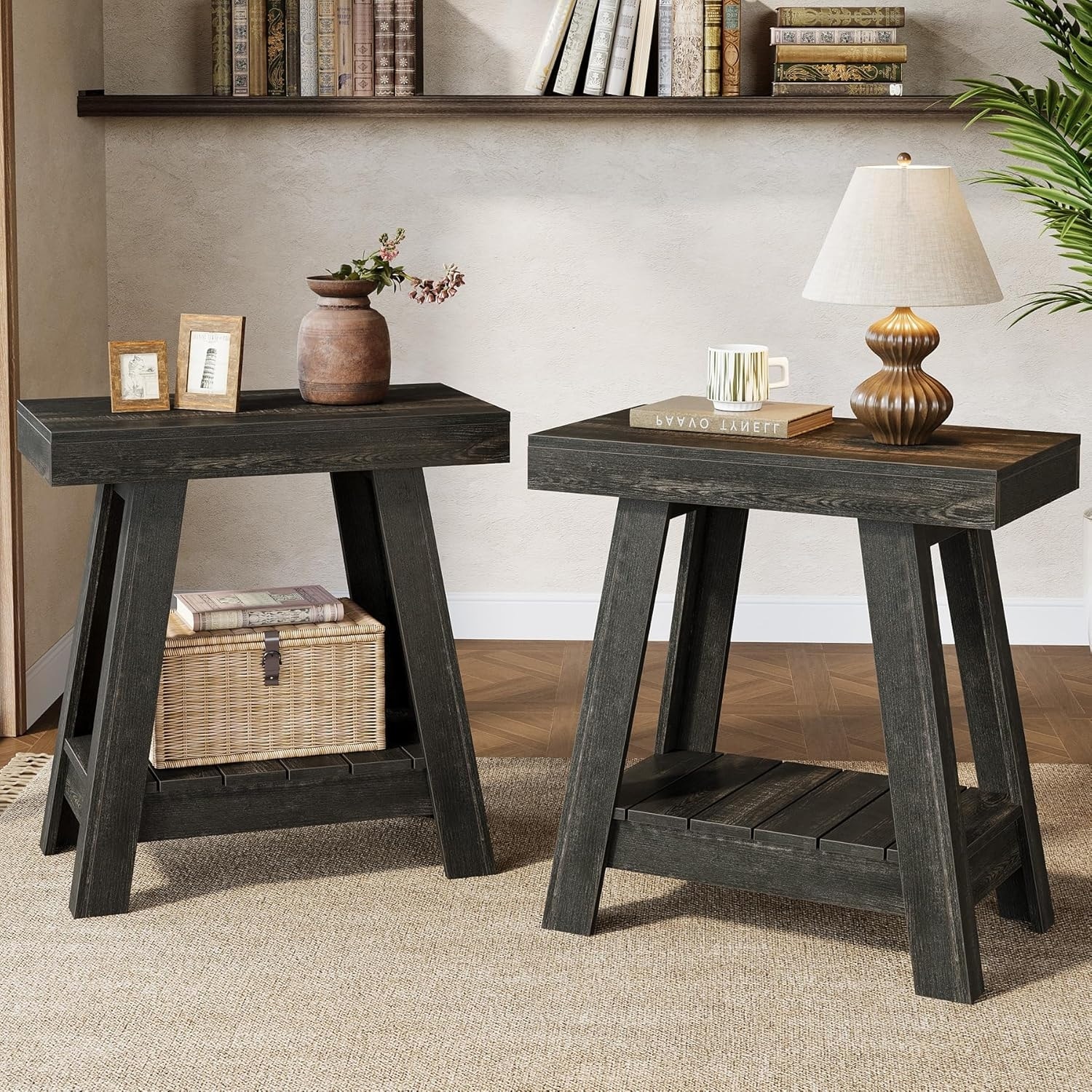 2-Tier Wooden End Table for Living Room, Bedroom, Small Spaces, Rustic Grey
