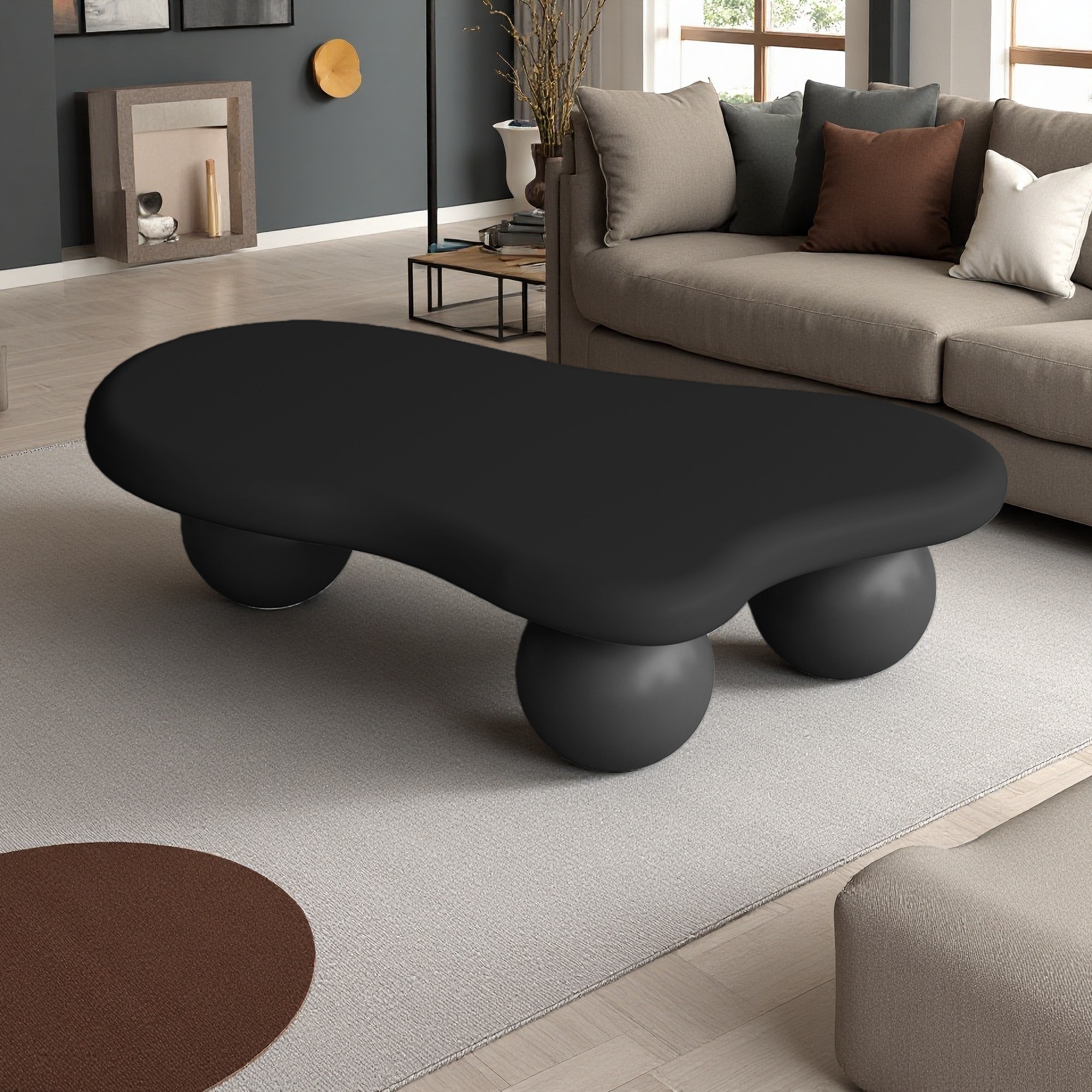 40" MDF Coffee Table with Cloud-Shaped Top and 3 Ball Legs with Child-Safe Rounded Corners and Easy Assembly