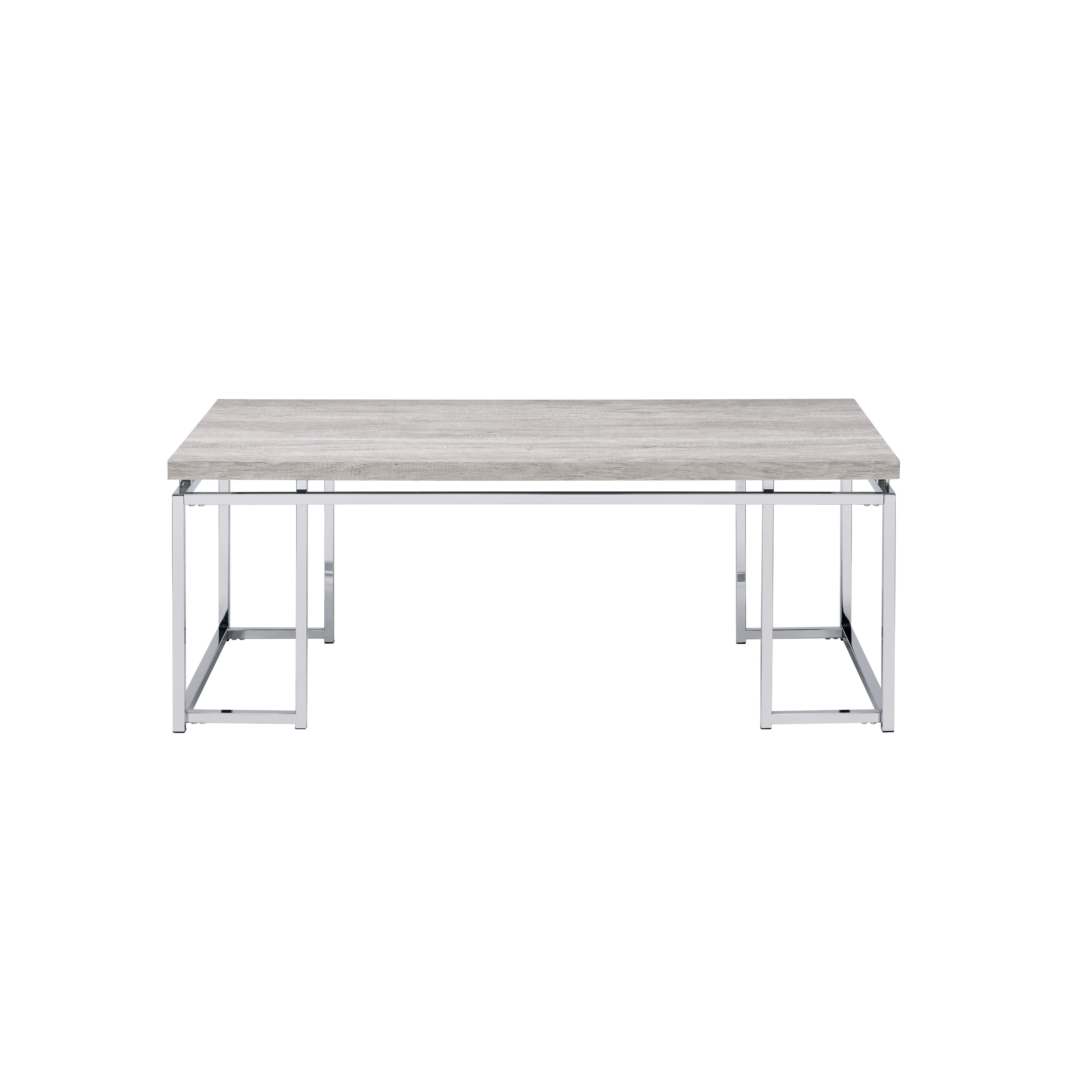 Modern Contemporary Coffee Table Natural Oak Living Room Furniture 1pc Center-Table Chrome Finish Frame Occasional Table