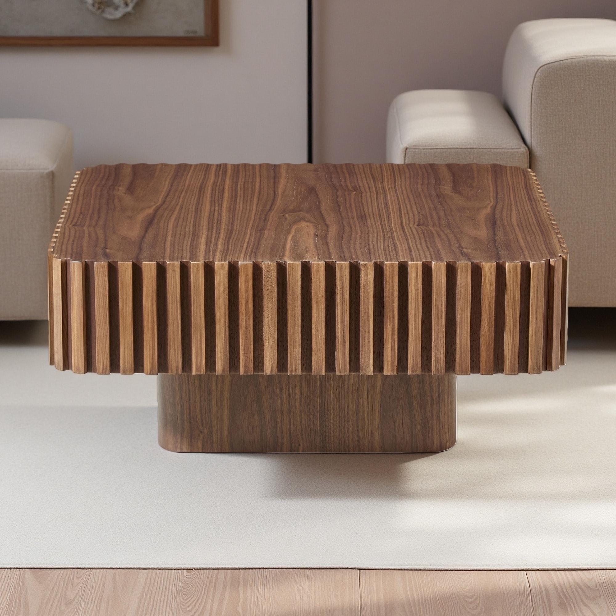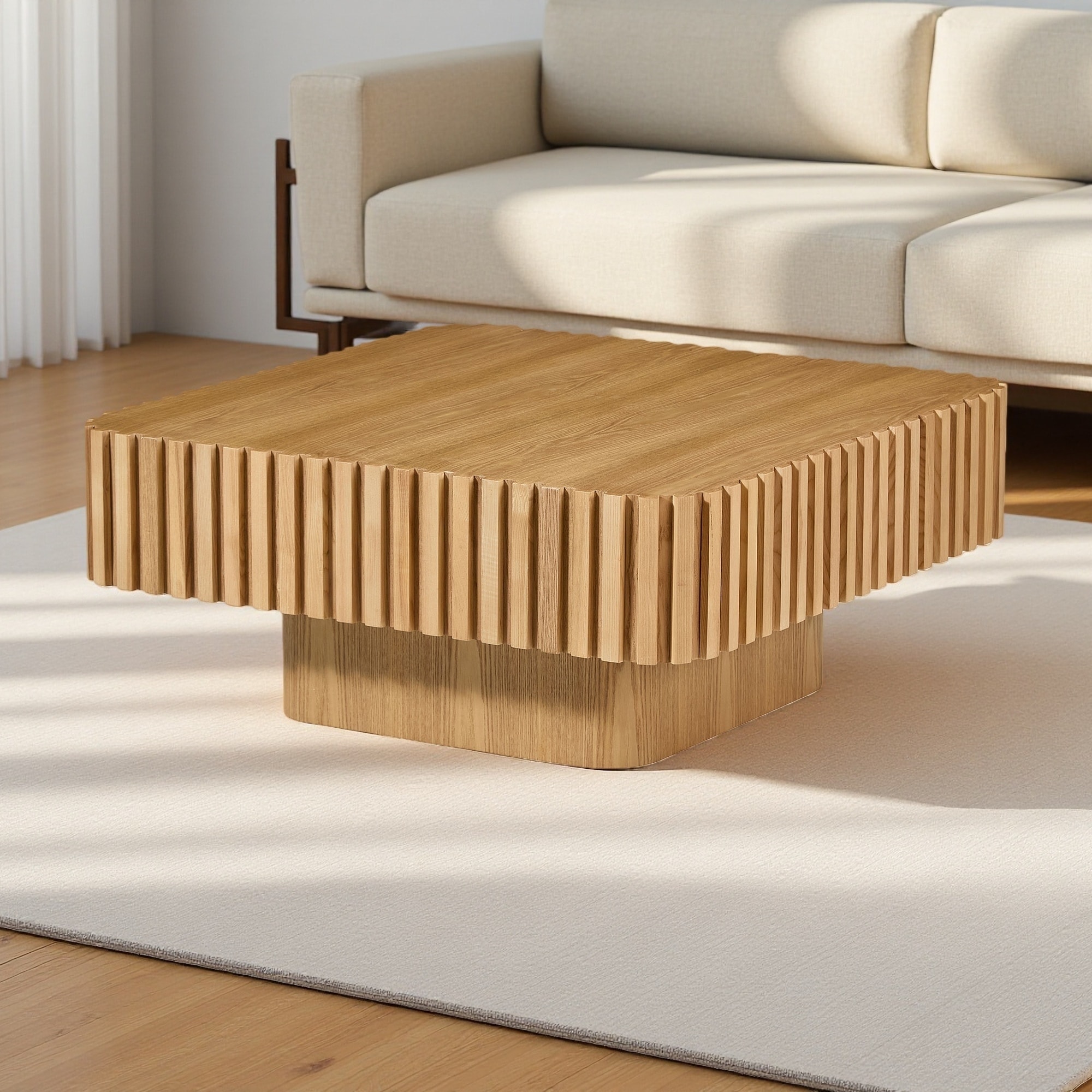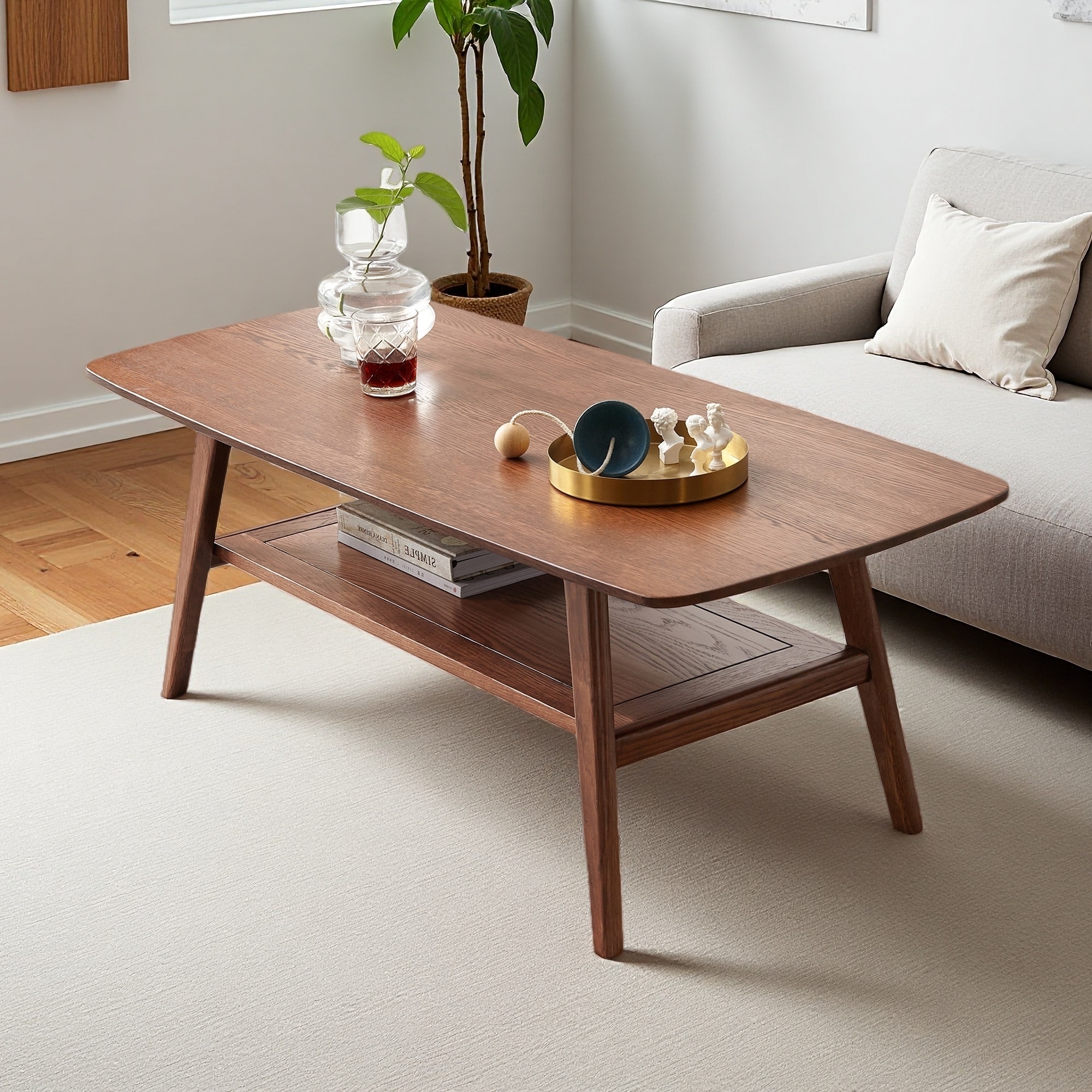 31" Dual-Layer Solid Wood Coffee Table with Rounded Corners