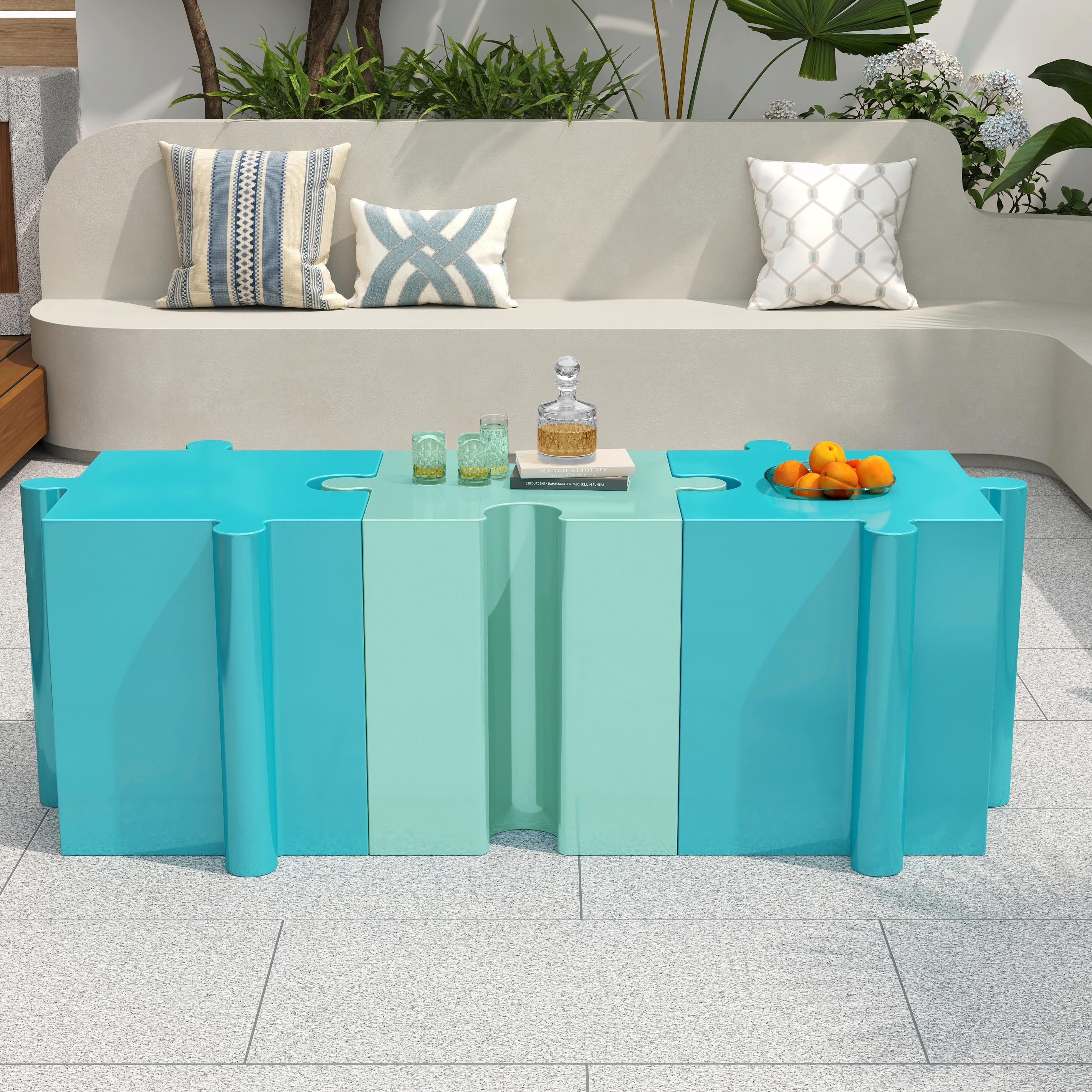 Modular Puzzle Table Set, Interlocking MGO Side Tables for Indoor & Outdoor