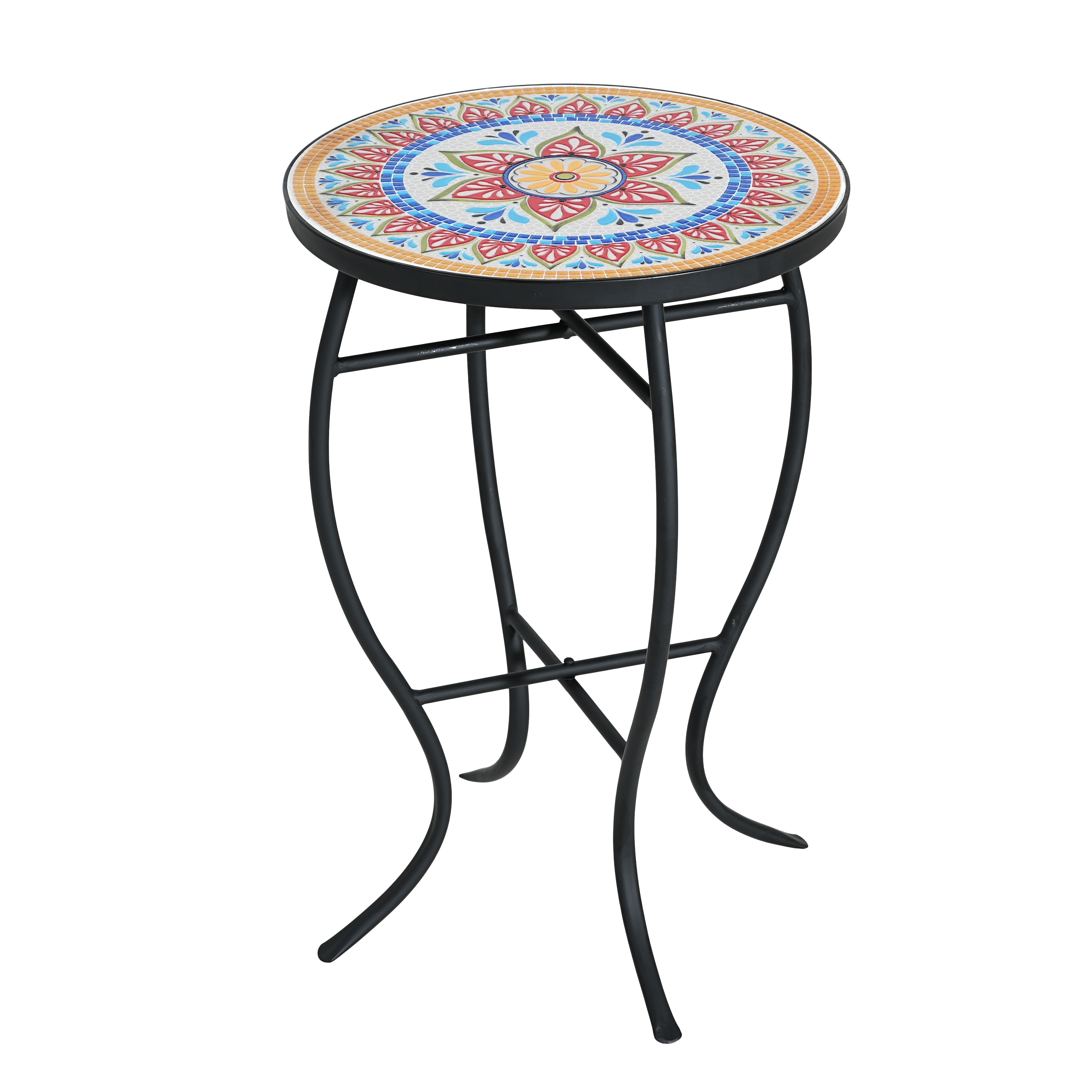 Christopher Knight Home - Han Outdoor Round Ceramic Tile Side Table with Iron Frame.