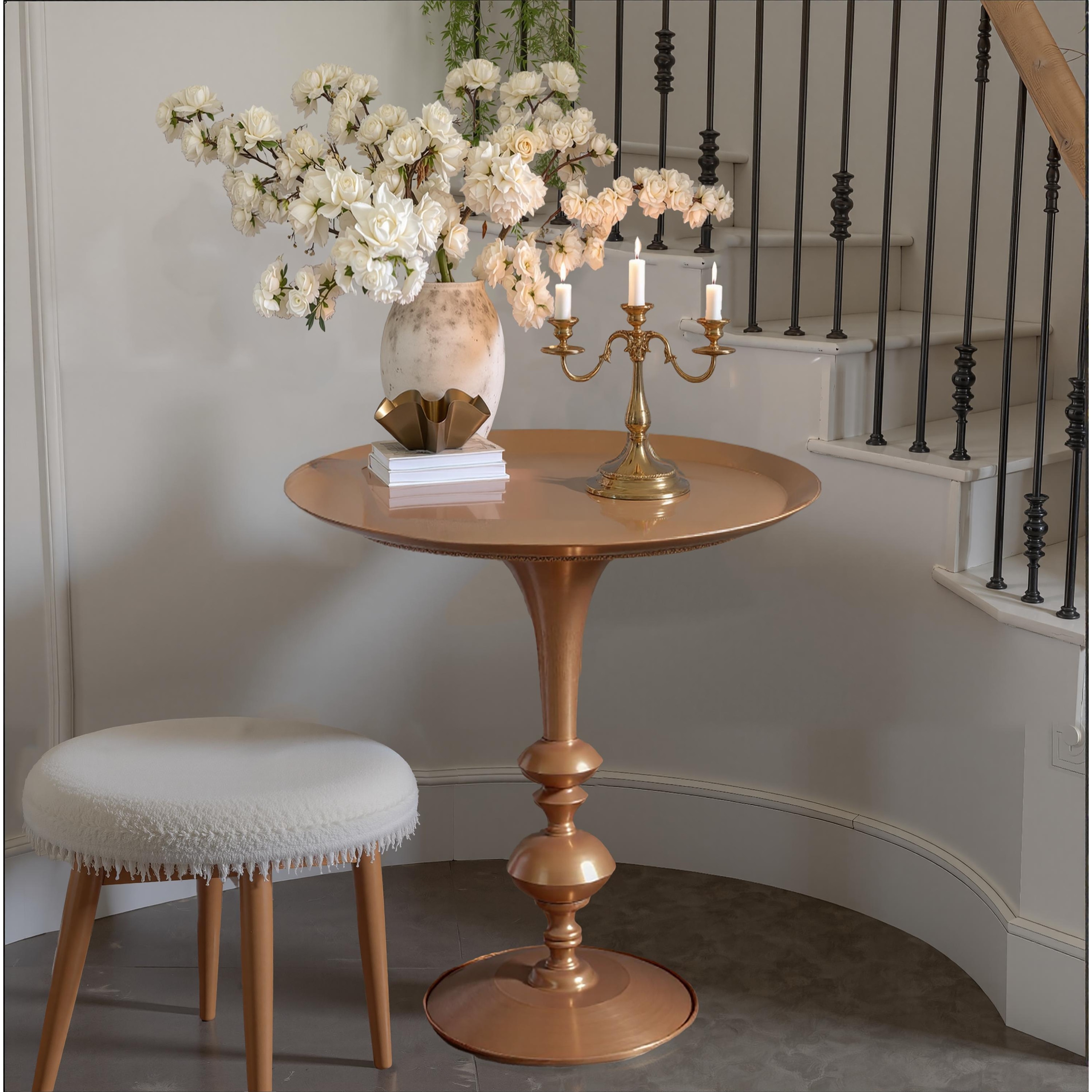 Small Round Gold End Table, 29.3" Height, Vintage Metal Accent