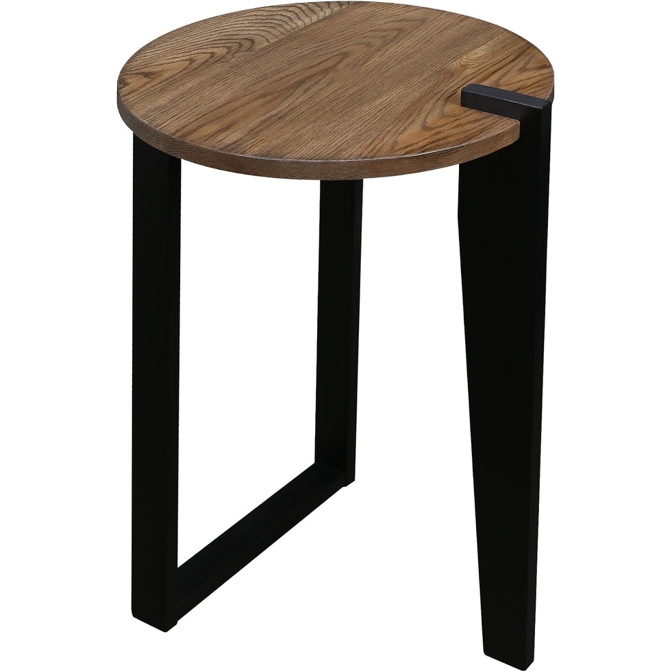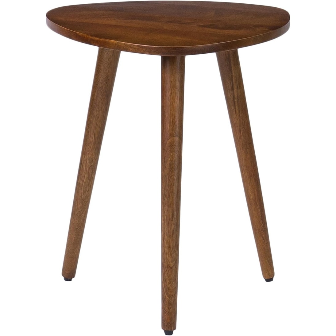 Modern Acacia Wood Side Table with Round Top and Triangular Base