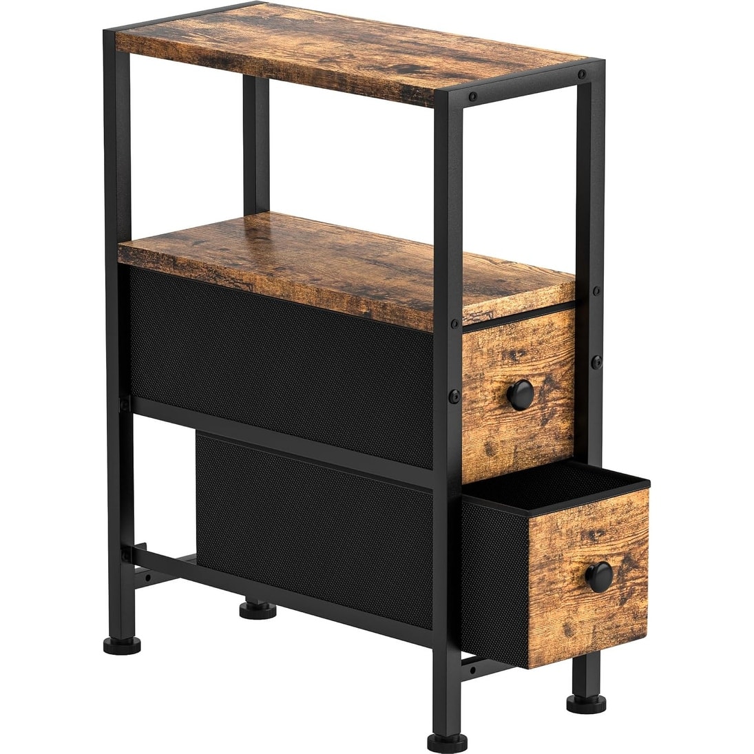 Slim End Table with Drawers, Narrow Nightstand for Small Spaces, Rustic Brown Storage Side Table for Living Room, Bedroom, Study