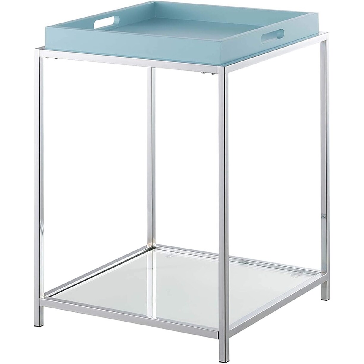End Table with Removable Trays and Shelf, Chrome Frame, Tempered Glass