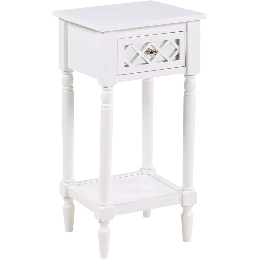 Traditional Farmhouse Side Table with Mirrored Drawer and Shelf, White