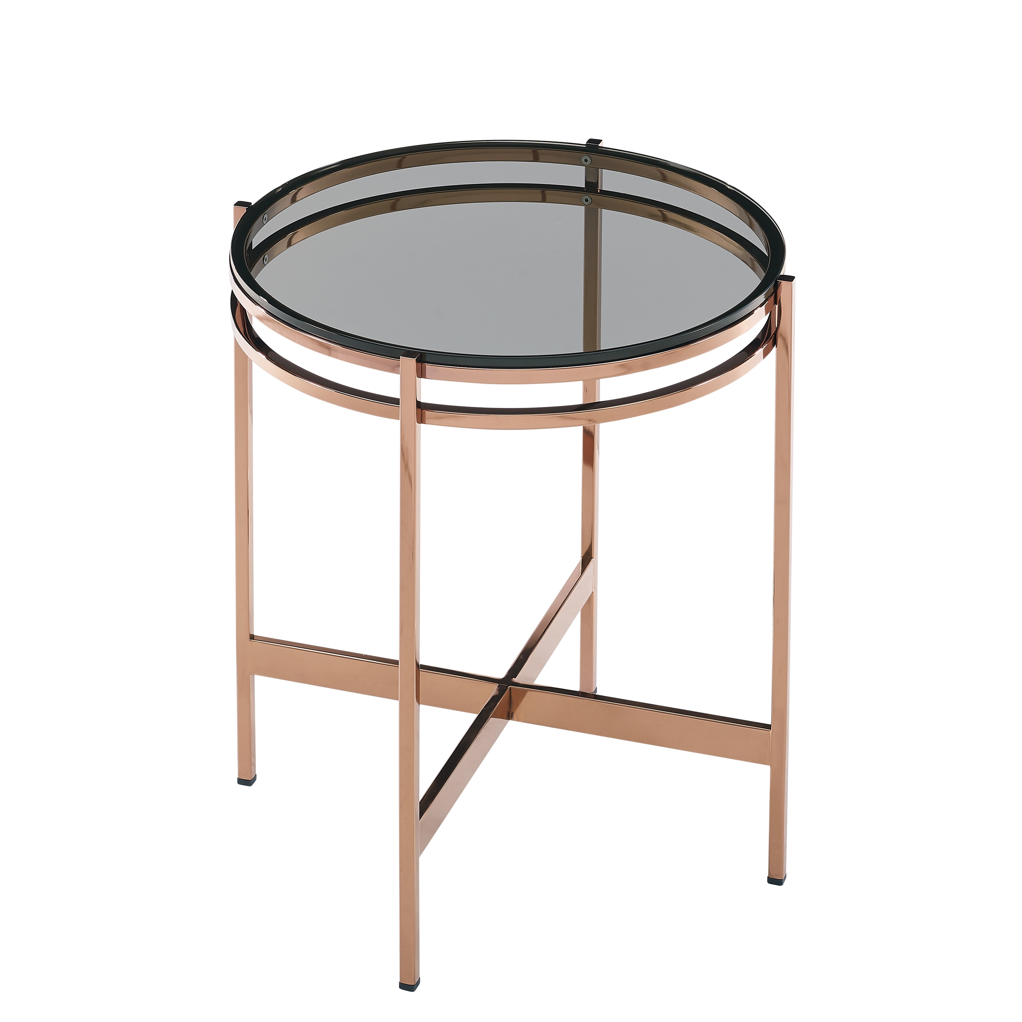 Modern Contemporary Round Aluminum material 32" Coffee Table and 21"Height End Table Set 2PC Tables with Glossy Diamond-