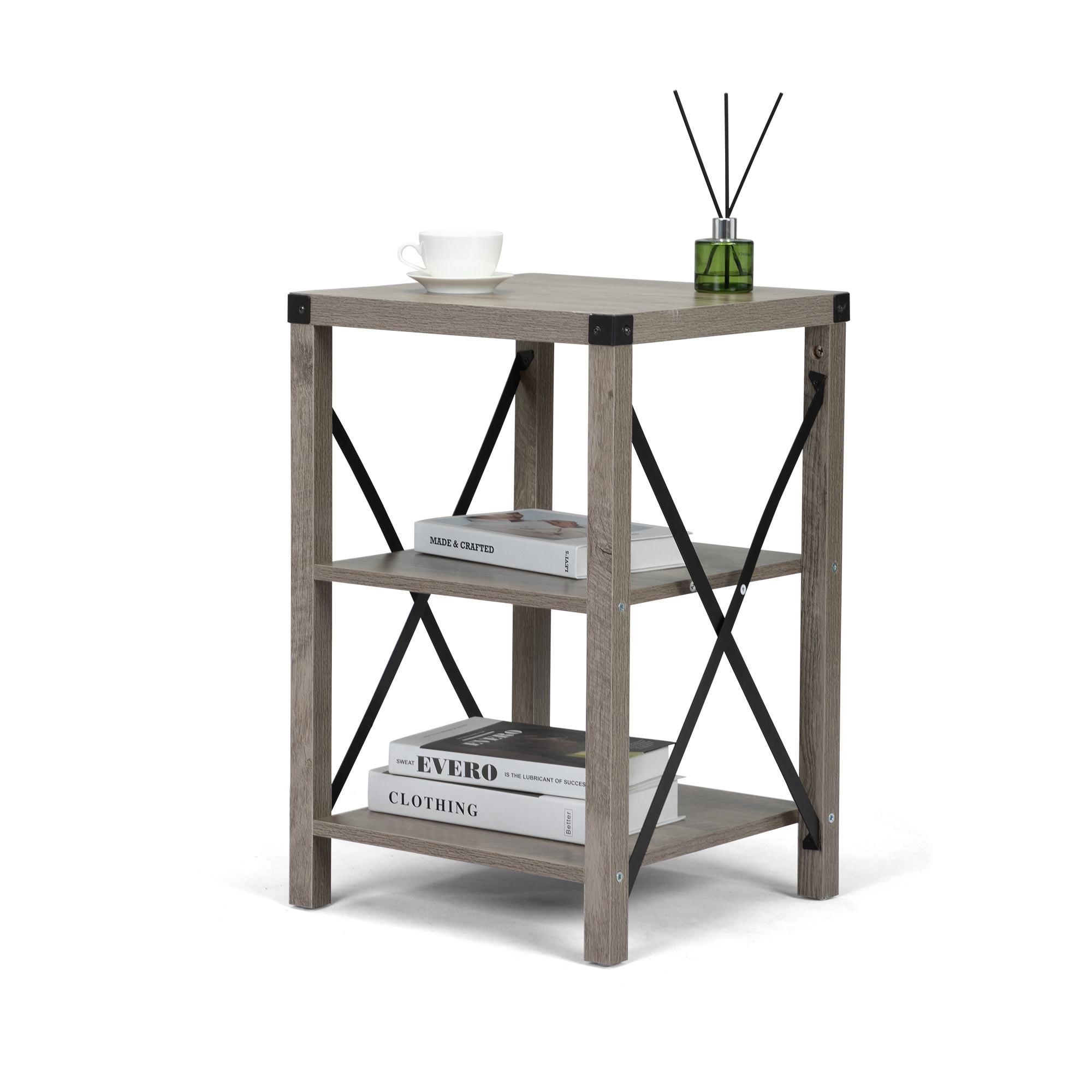 2PC Farmhouse Square End Table,Sofa Side Table with X-Shaped Metal Support,3-Tier Storage Shelf