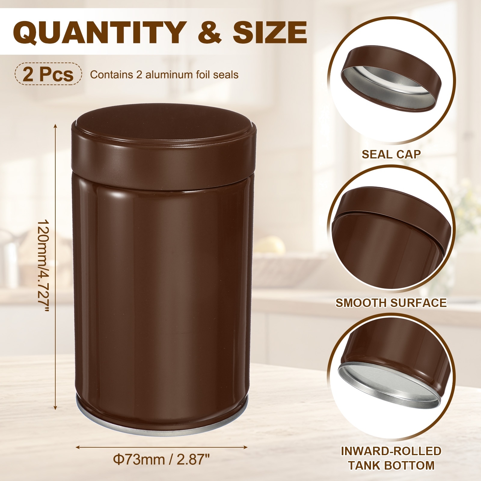 Tea Tin Canister, Round Tin Can with Lids - 4.13 x 4.17"
