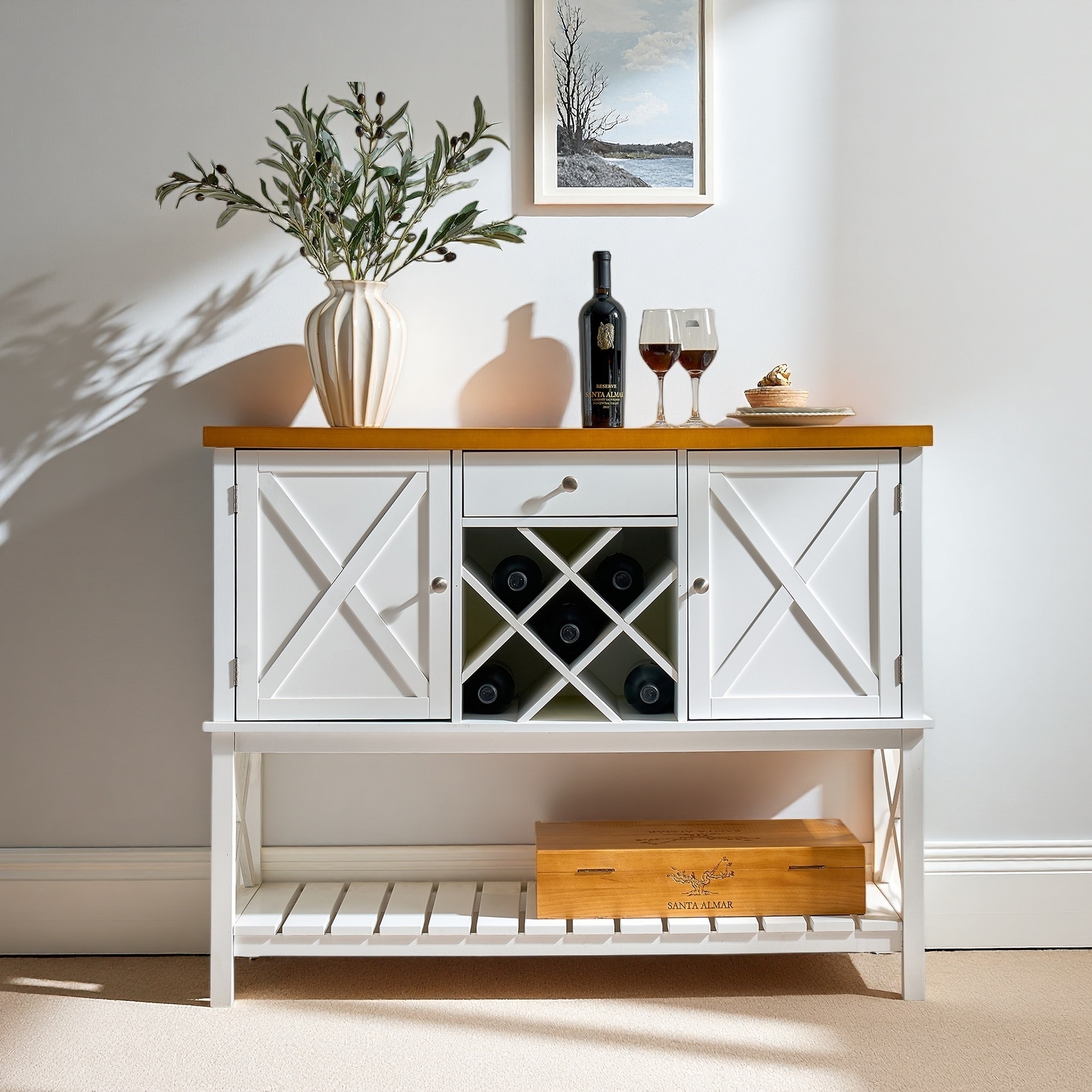 47.5" Bar Cabinet Console Table with Wine Rack, 2-Door Cabinet, Drawer, Open Shelf - Multi-Purpose Buffet Sideboard for Kitchen
