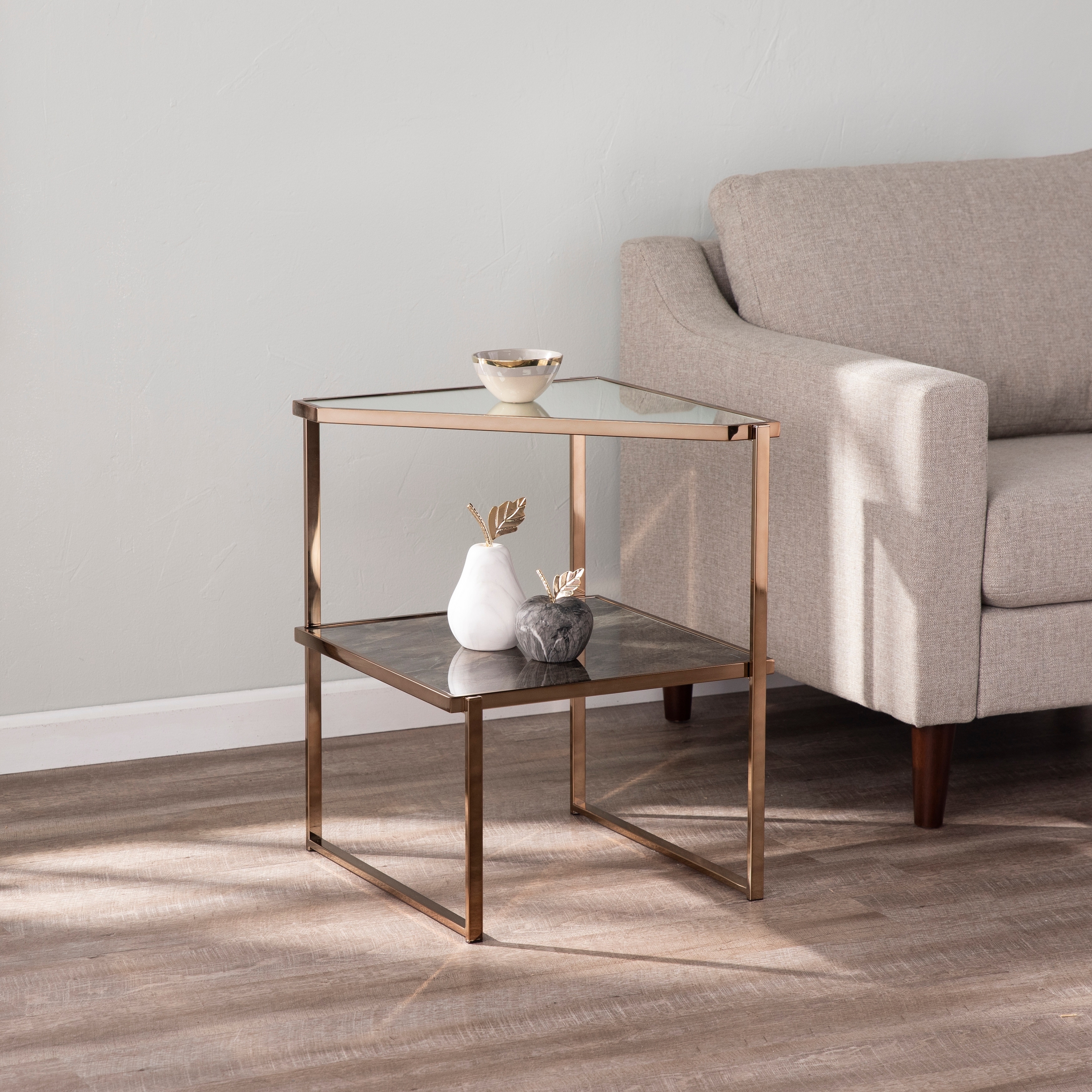 Silver Orchid Tarton Mirrored Side Table w/ Faux Stone Glass