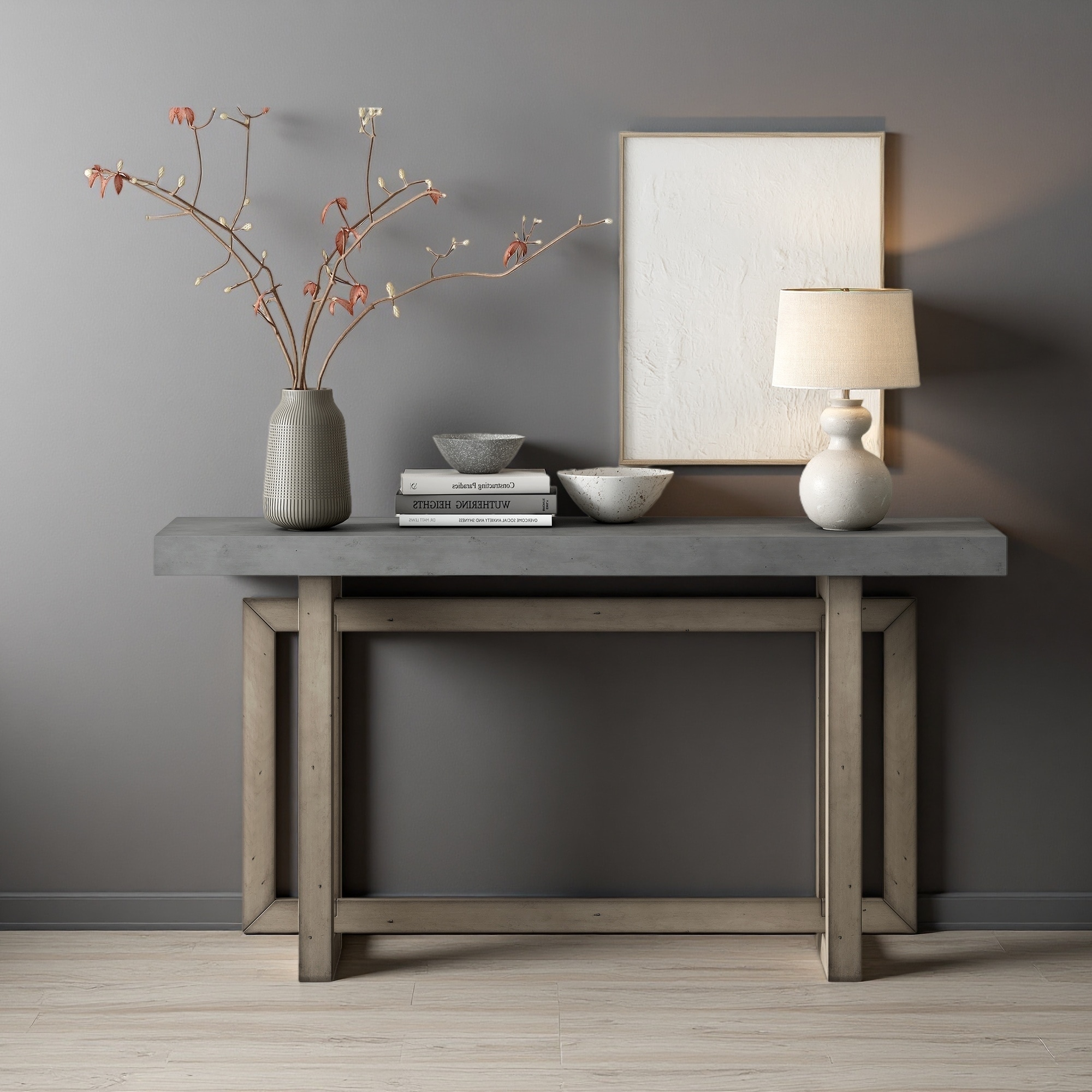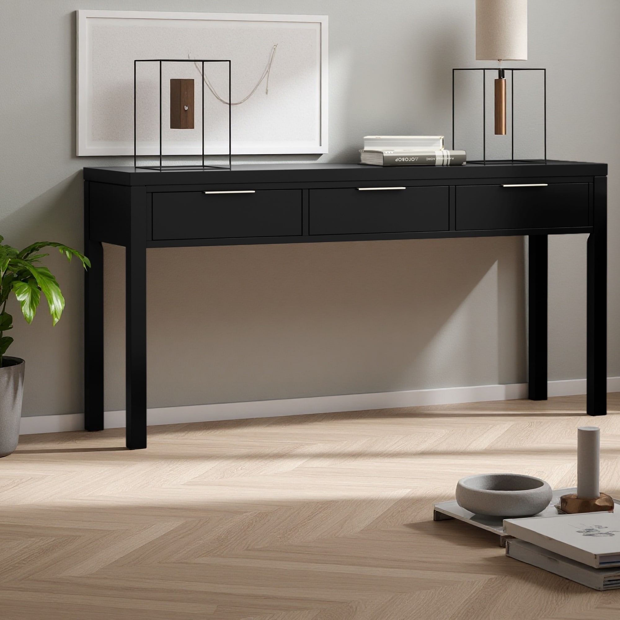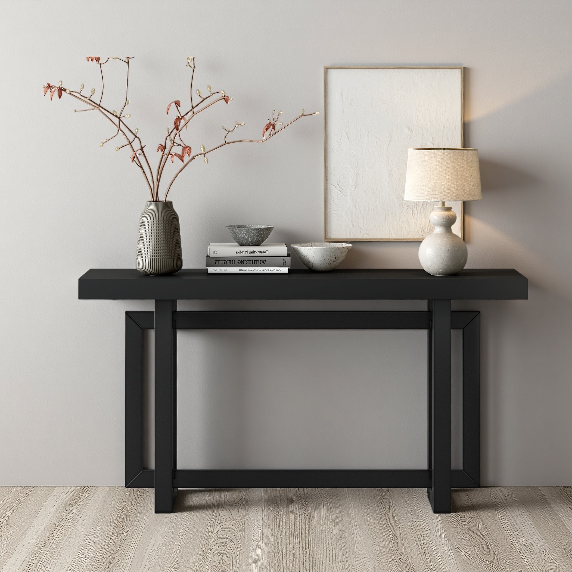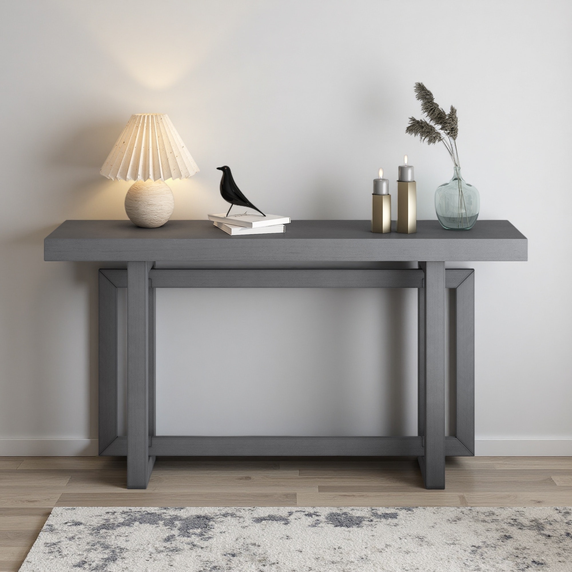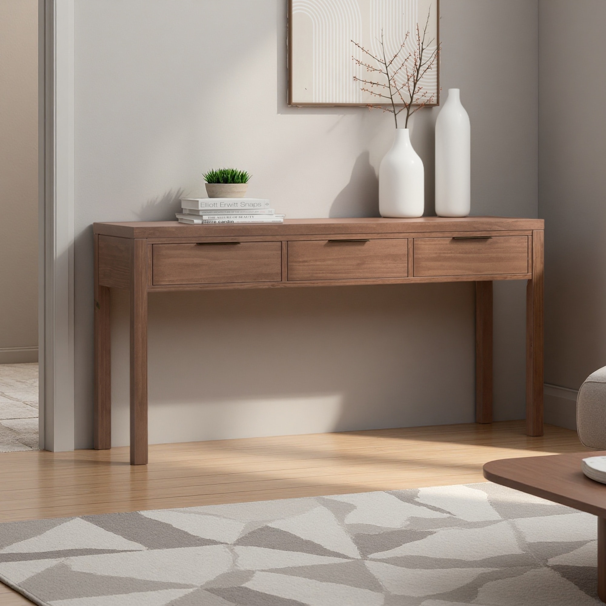 59.1" Pine Veneer Console Table with Triple Rectangle Design & Pine Legs