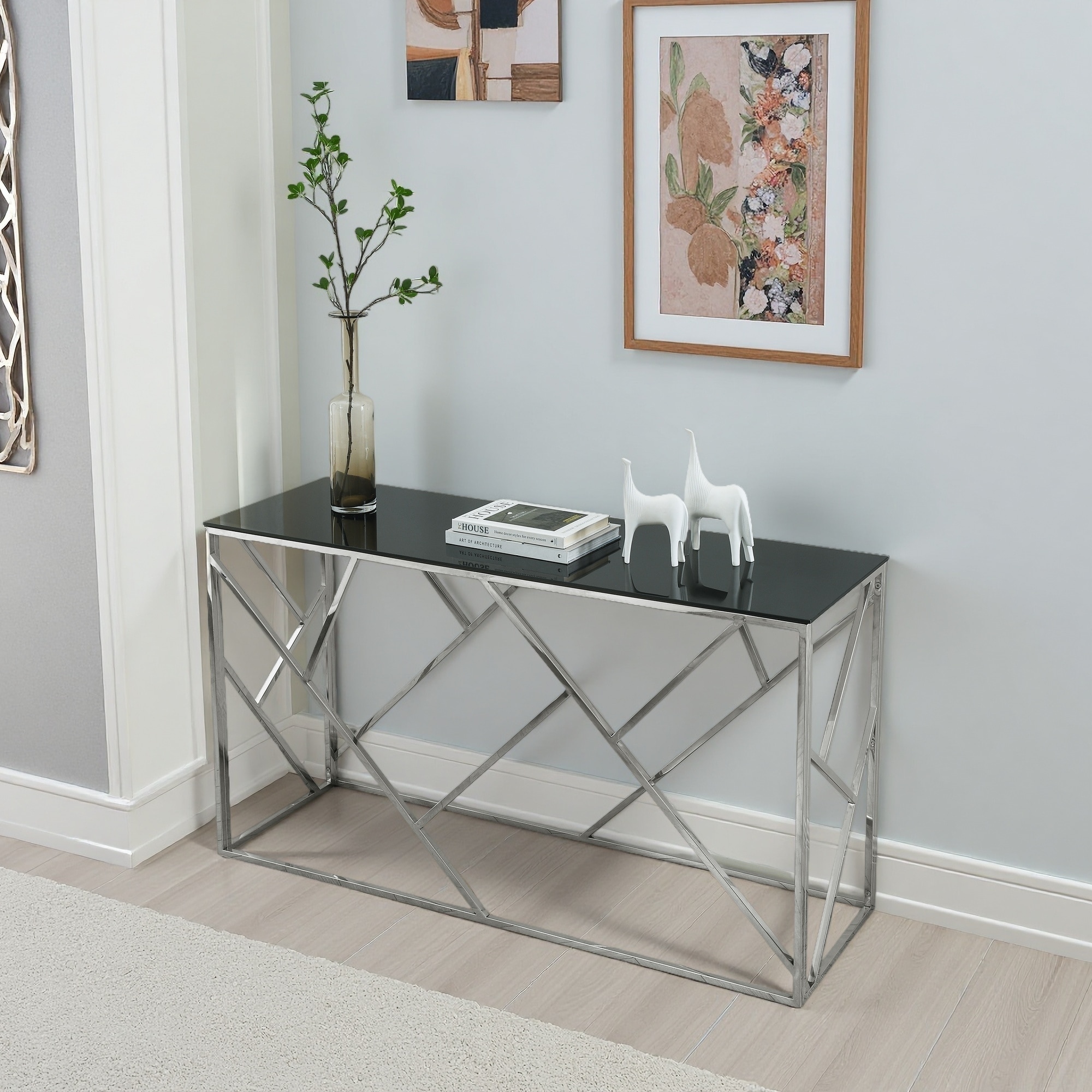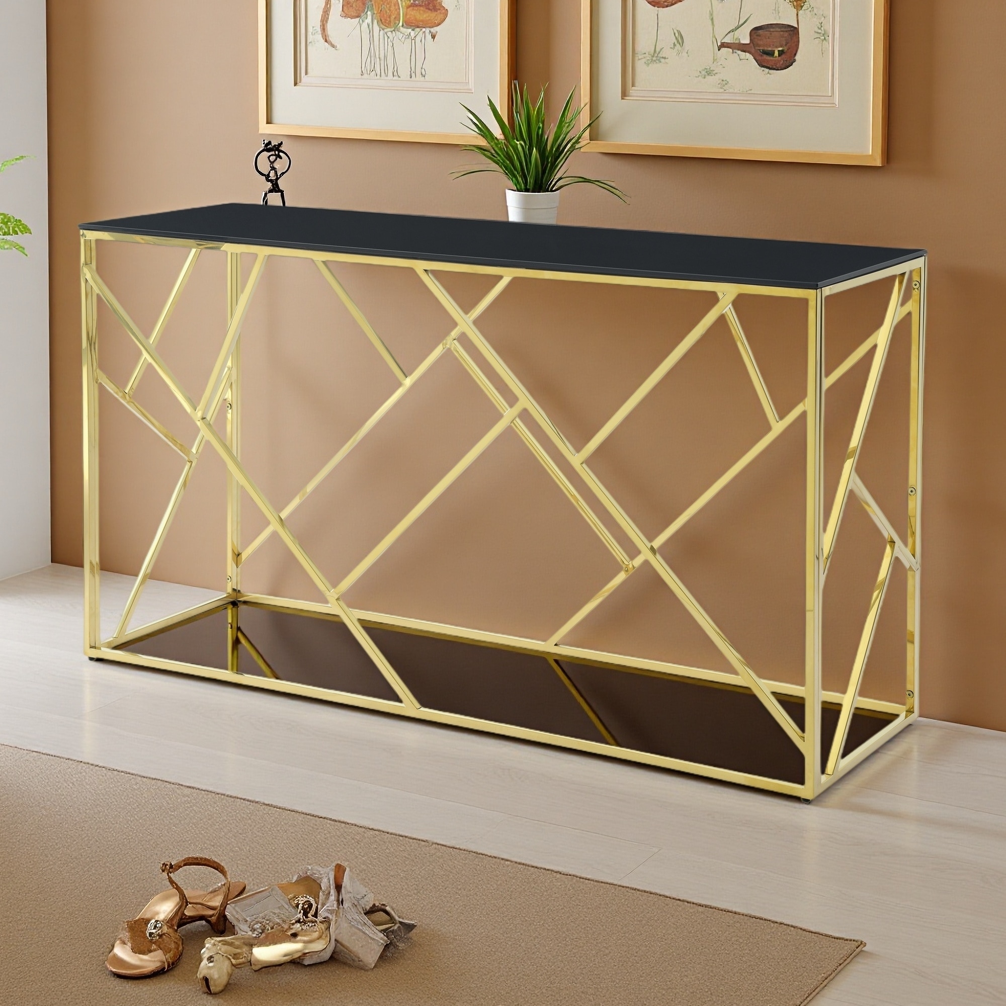 55" Glass Console Table with Gold & Chrome Frame