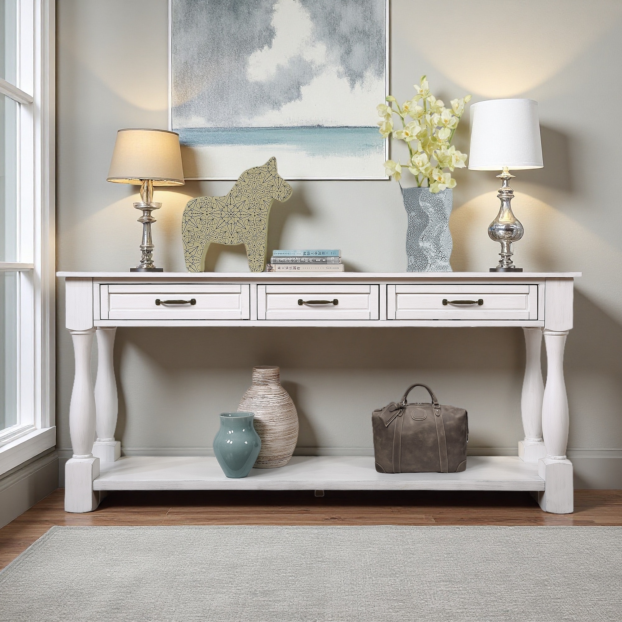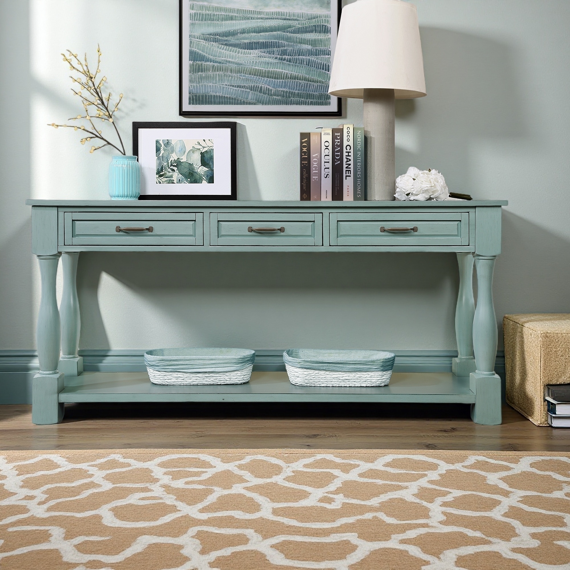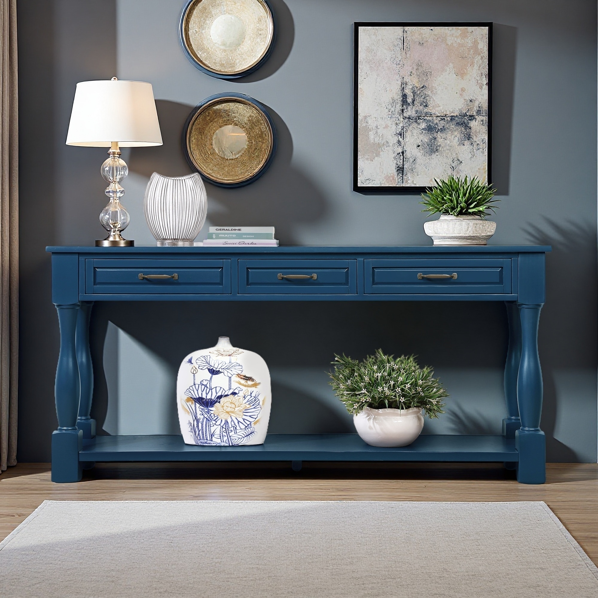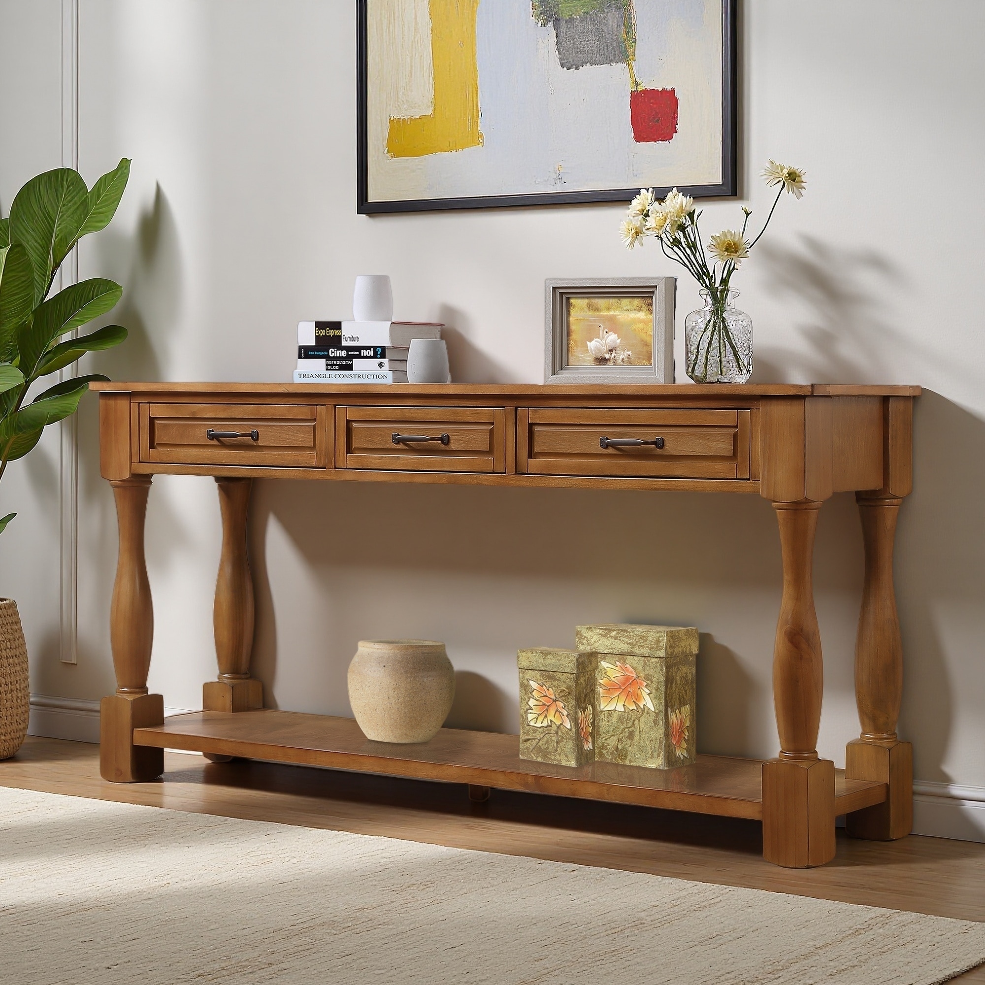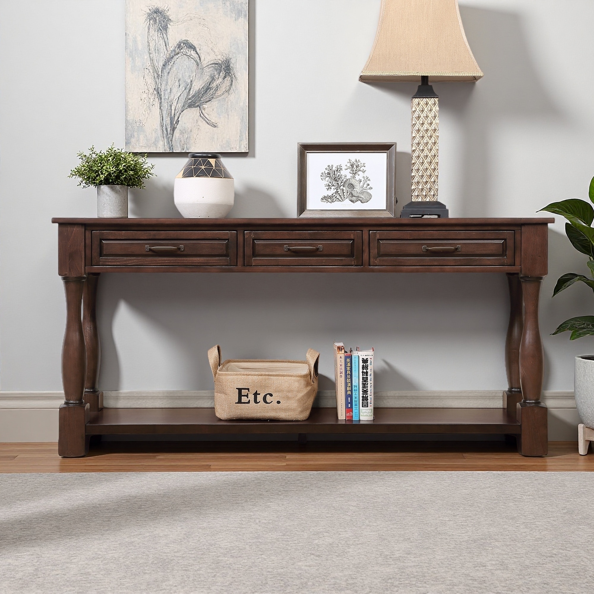 63" Solid Wood Console Table with 3 Drawers & Shelf