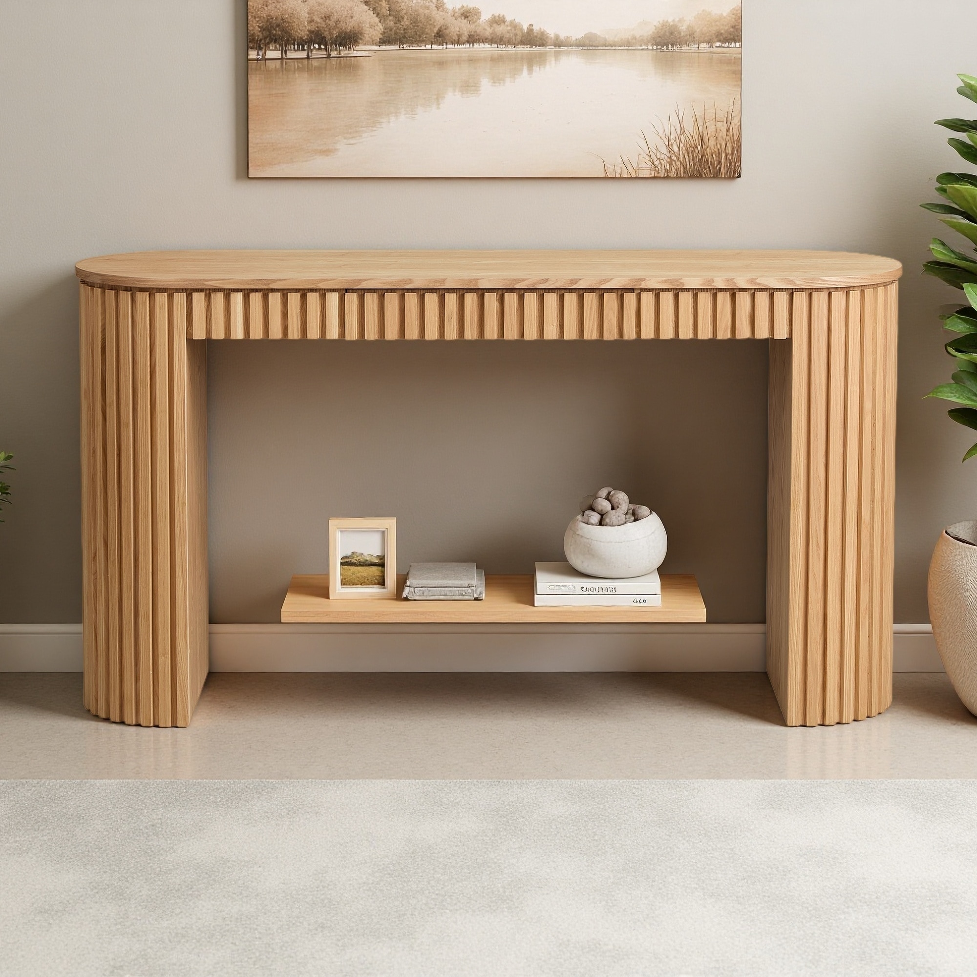 58.2" Entryway Table with Large Top and Dual Drawers,Console Table with Arched Sturdy Legs Stripe Design
