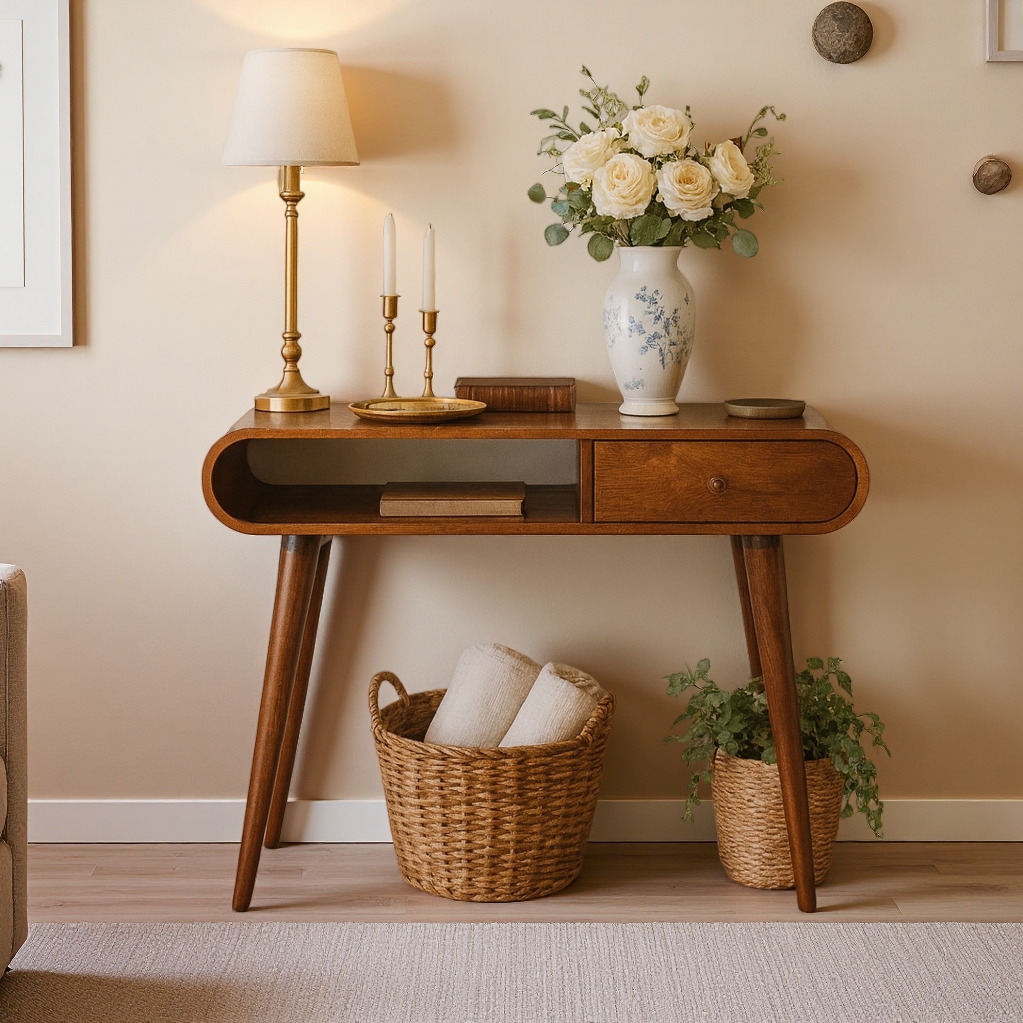 35.43" Chestnut Console with 1 Drawer & Open Storage