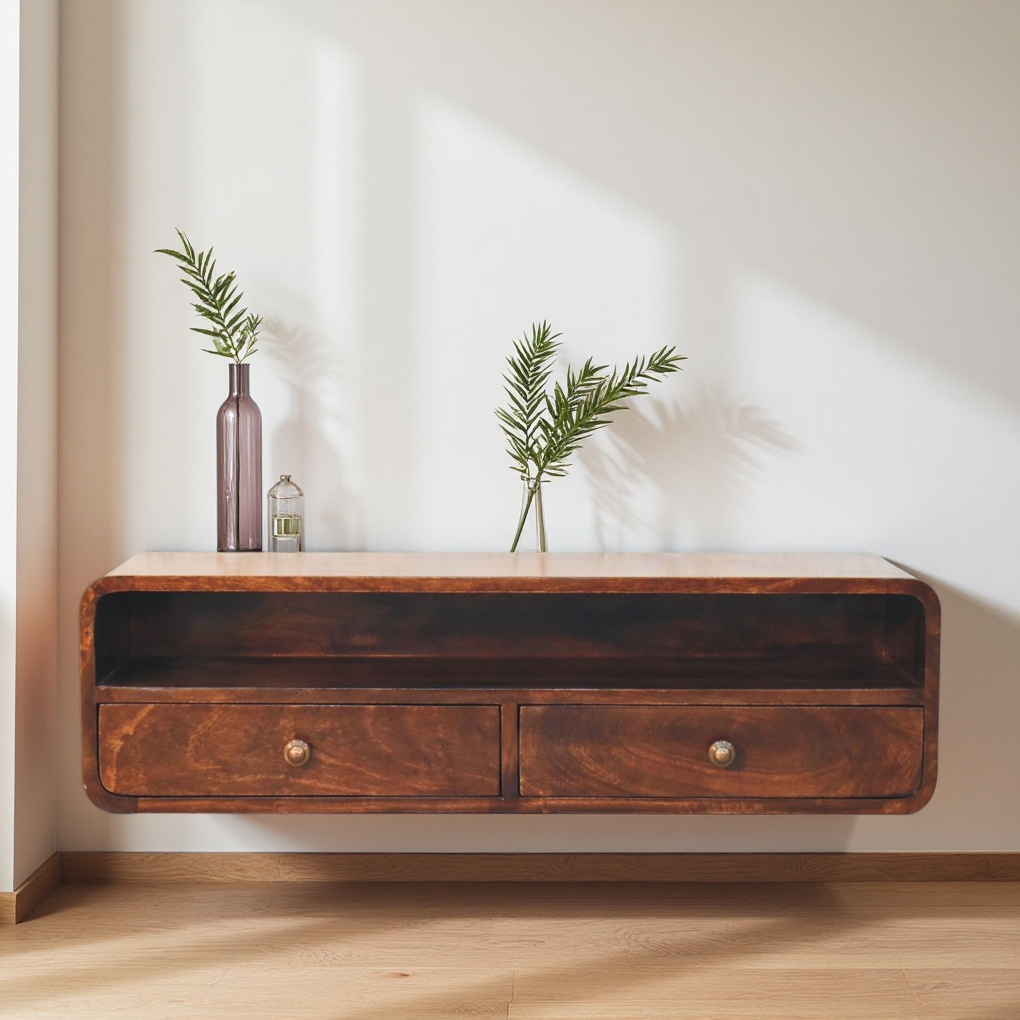 35.4" Mango Wood Floating Console Table with 2 Drawers