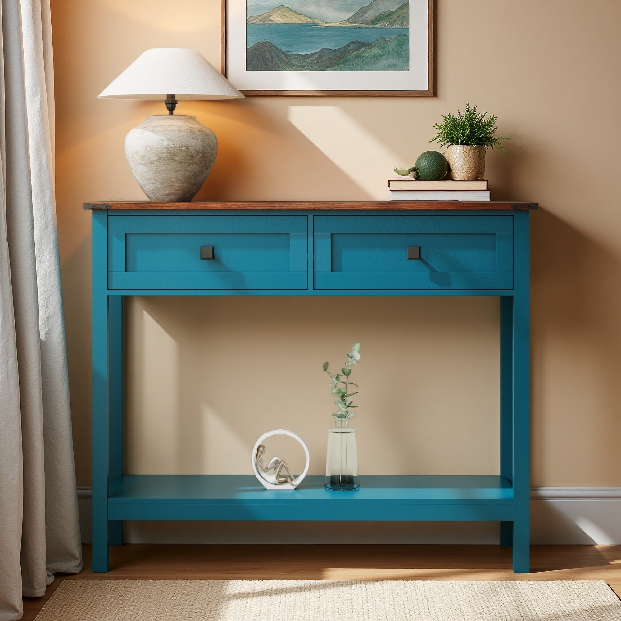 39.37" Farmhouse Style Console Table with 2 Drawers and Bottom Storage Shelf - Rustic Side Table for Entryway, Living Room