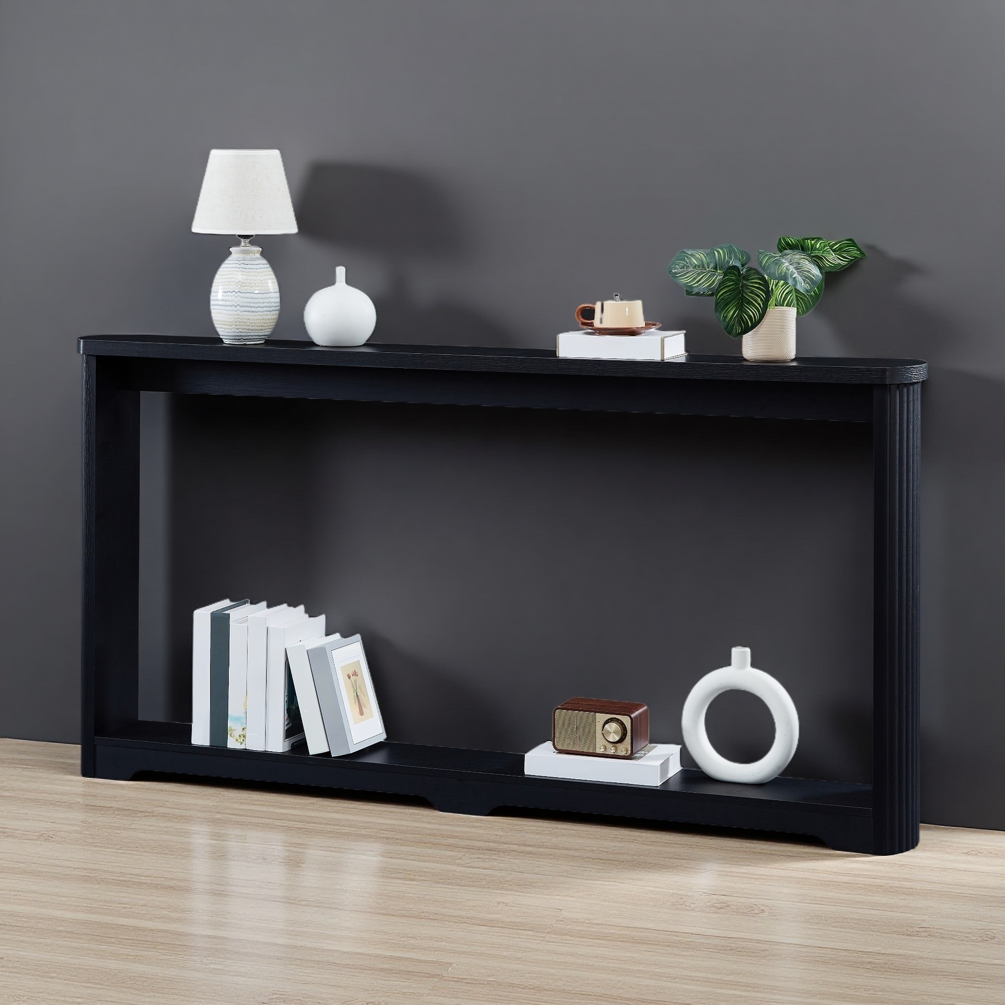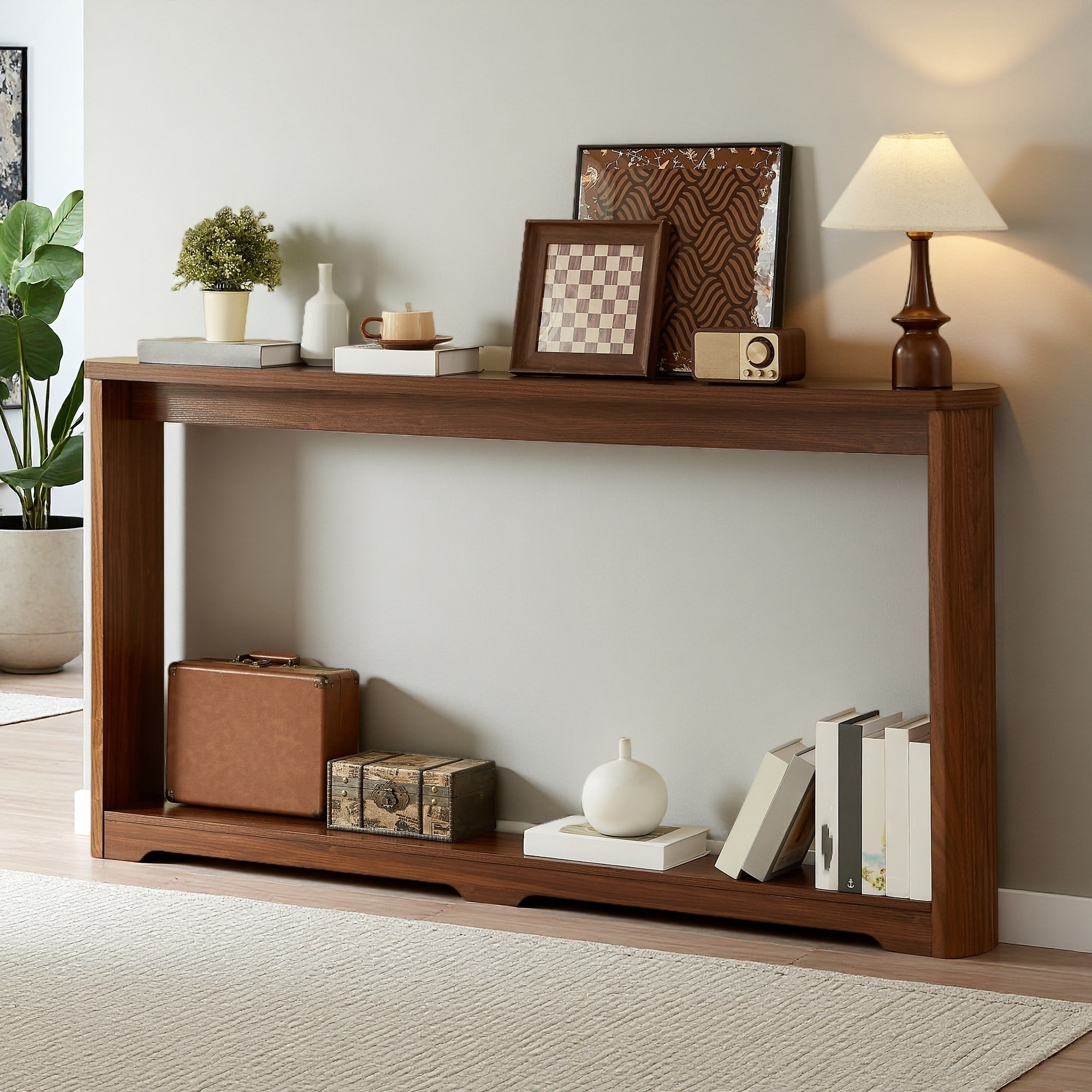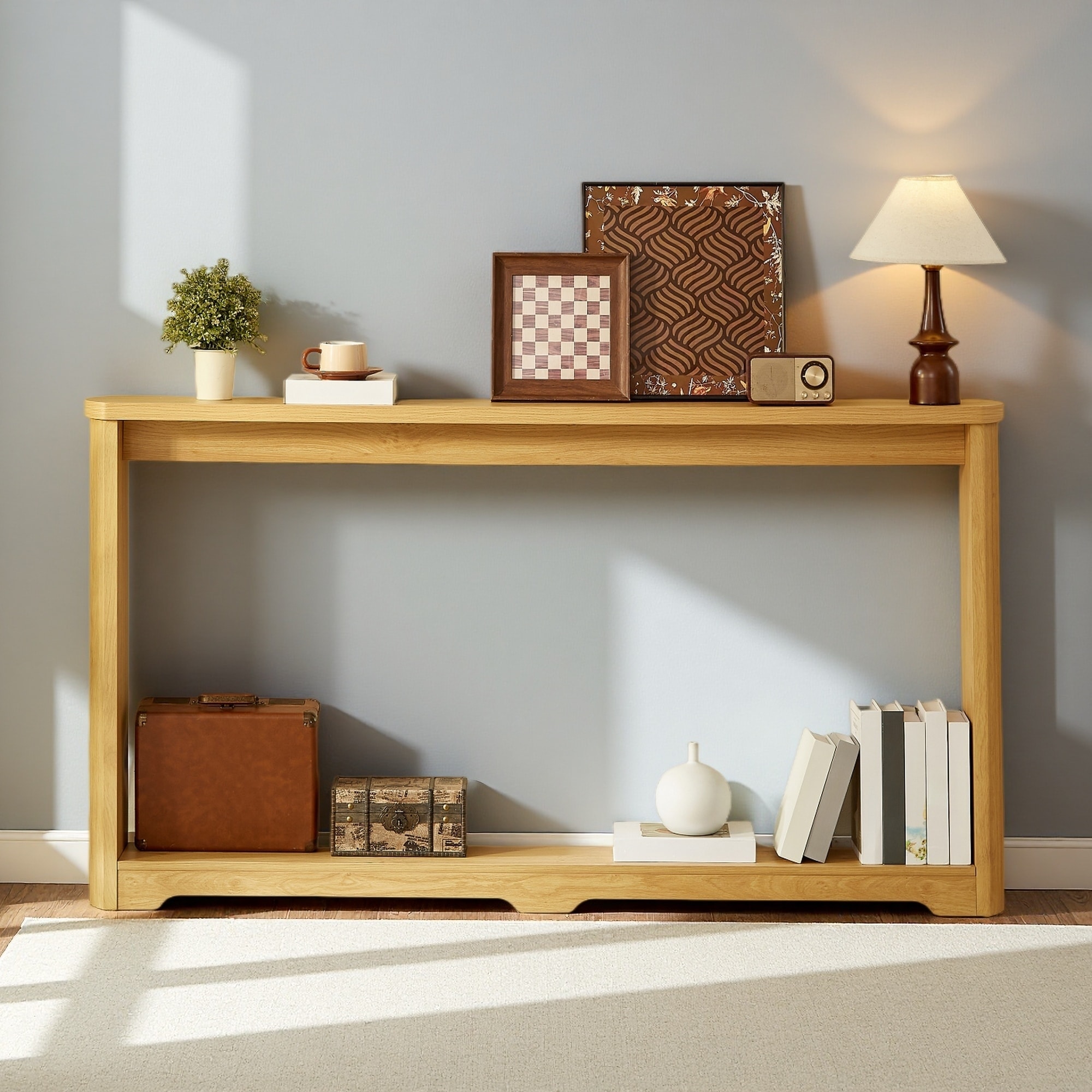 63" Solid Wood Console Table with Metal Accents & Built-In Shelf