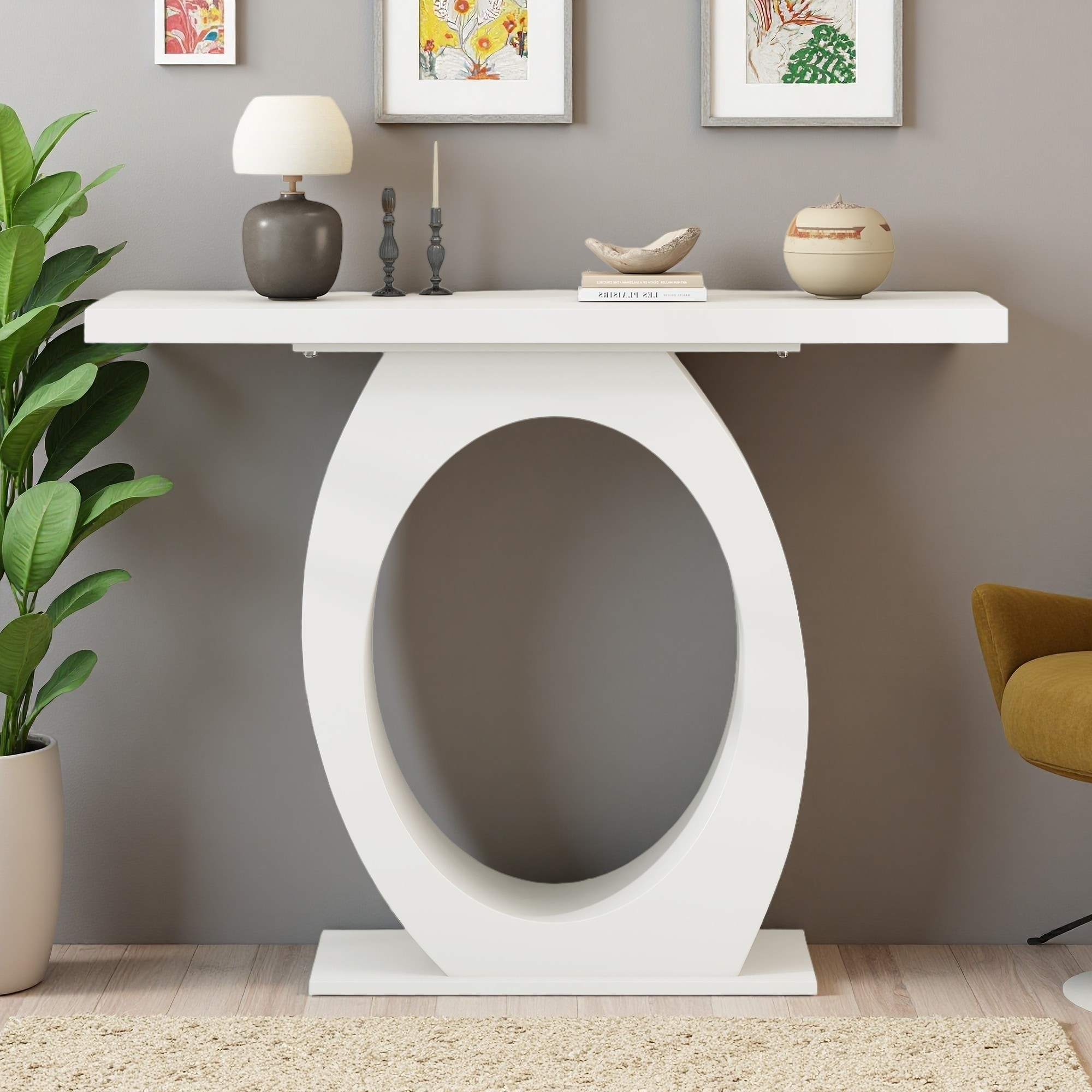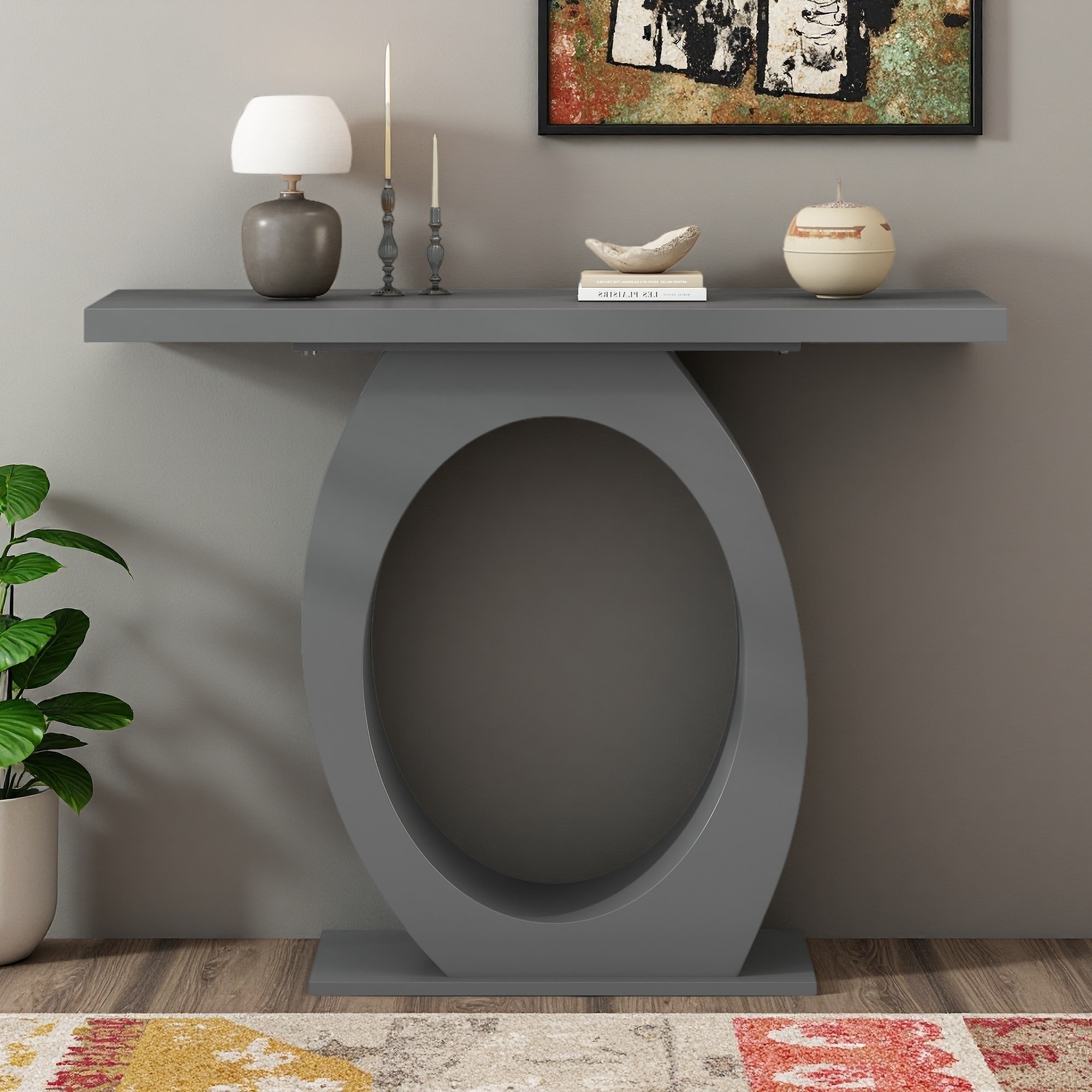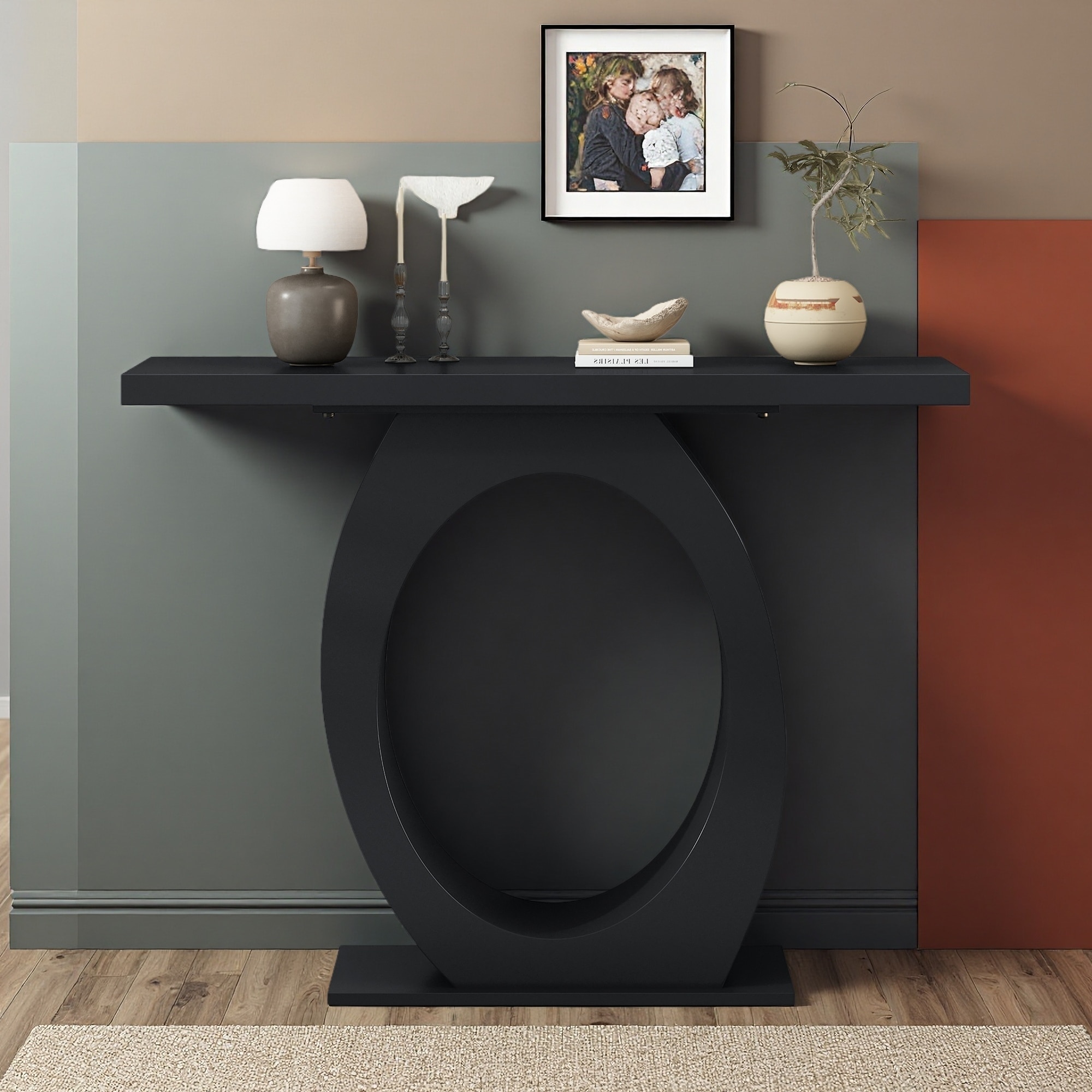 39.4" MDF + Acacia Veneer Console Table with Egg-Shaped Base