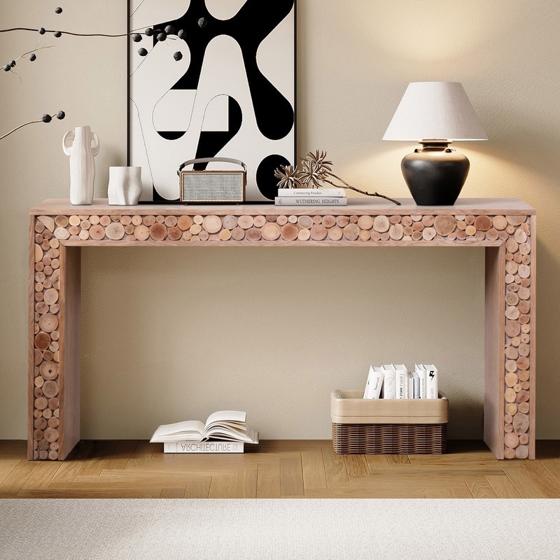 Rustic Wood Console Table with Natural Log Accents for Entryway or Hallway Display and Organization