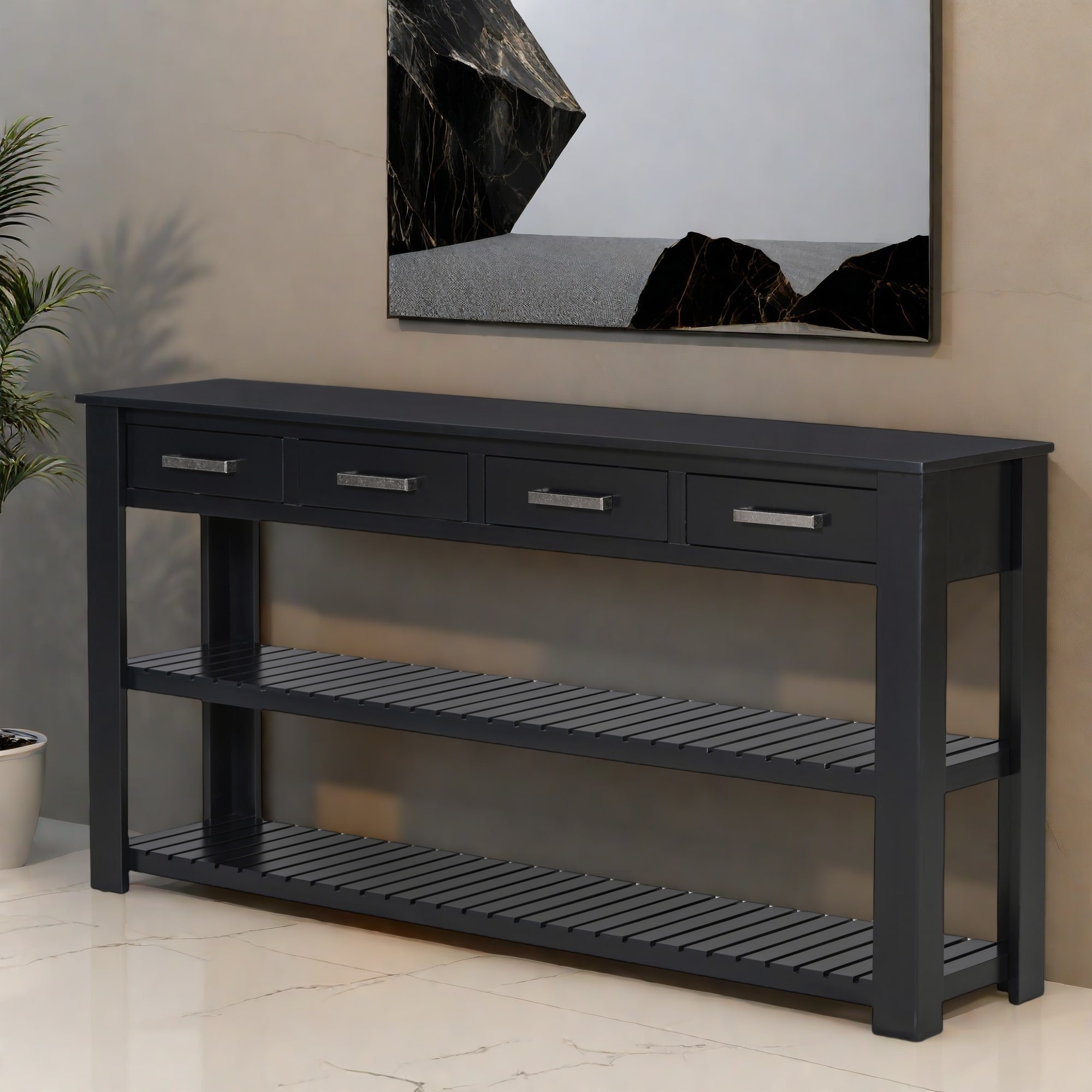 Roomfitters 62.9" Solid Wood Console Table, Rustic Entryway Table with Thick Top, Open Shelf & Rivet Details